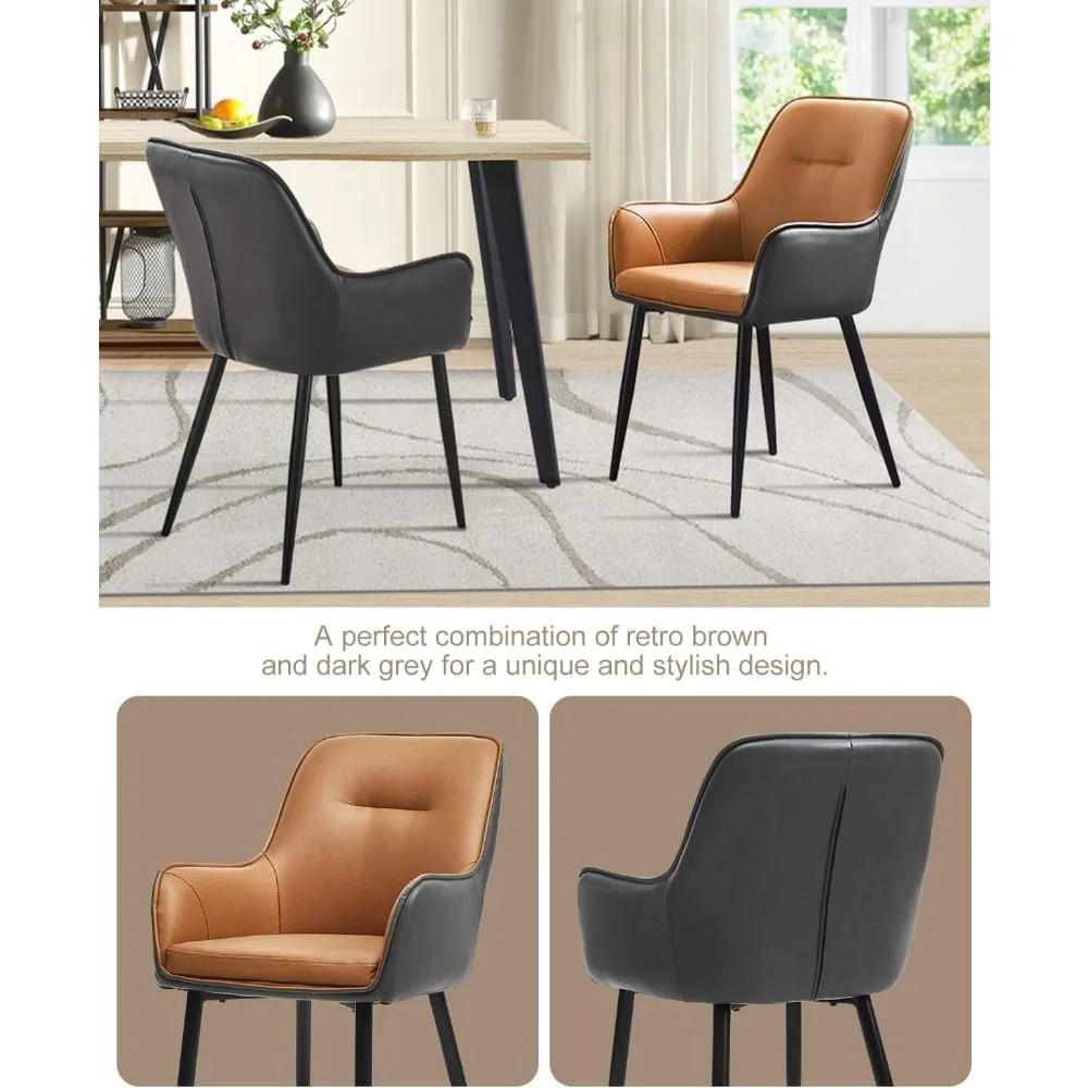 - Leather Dining chairs set: Unique Collision of Two Colors, Traditional Brown and Grey Faux Leather Chairs: The collision of two-color, rich in layers, highlights the balance in design. Increase the sense of design and Make your space unique. The modern chairs are covered by faux leather. The delicate surface with soft texture and abrasion resistance. Easy to clean,