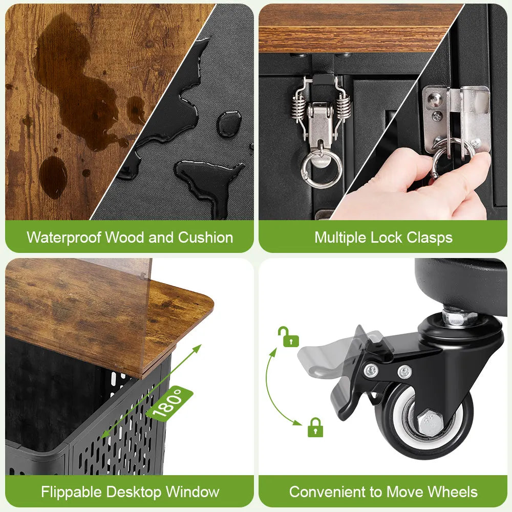 【Cushion & Movable & Lockable Wheels】Dog kennel furniture provides a water-repellent cushion and 5 S type hook convenient for use. If you have high quality door lock, don't worry about the dog's escape. And 4 wheels allow you to move and lock the medium dog crate anywhere you want.