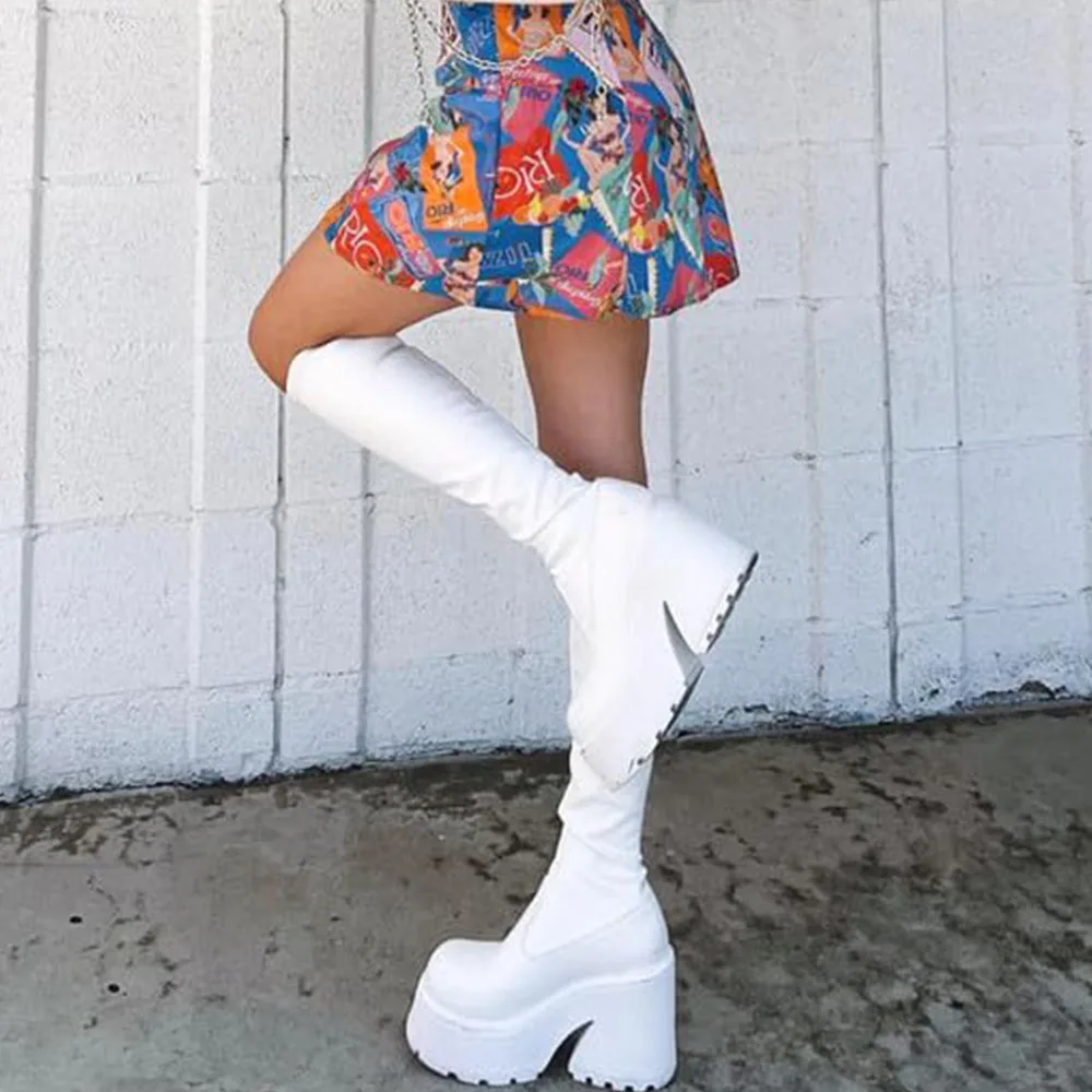 DoraTasia Fashion Round Toe Chunky Heel Women's Stretch Boots INS Punk Street Snap Motorcycle Nightclub Winter Shoes Woman