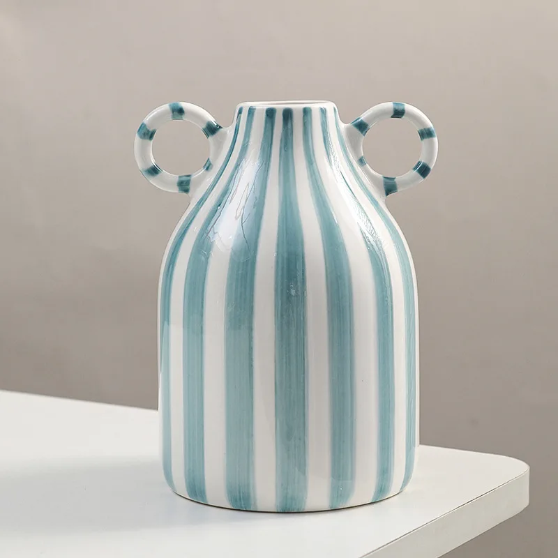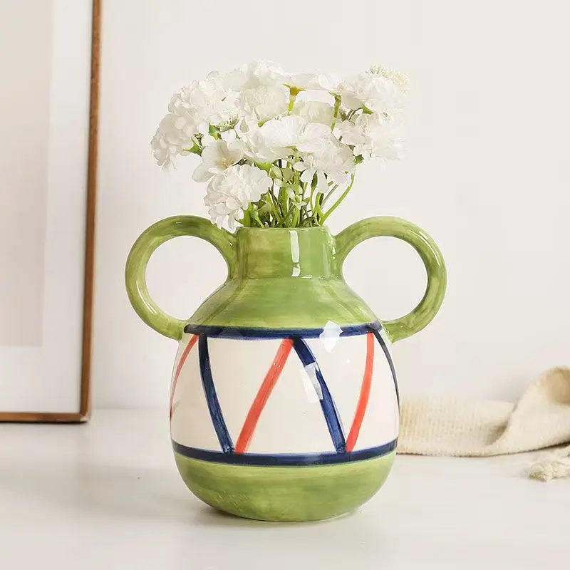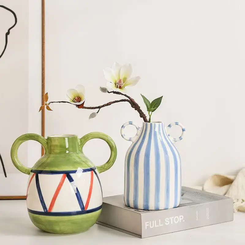 Dual Handles Ceramic Vase Modern Bohemian Home Decor Hand-Painted Vases for Flowers Living Room Decoration Weddings Parties