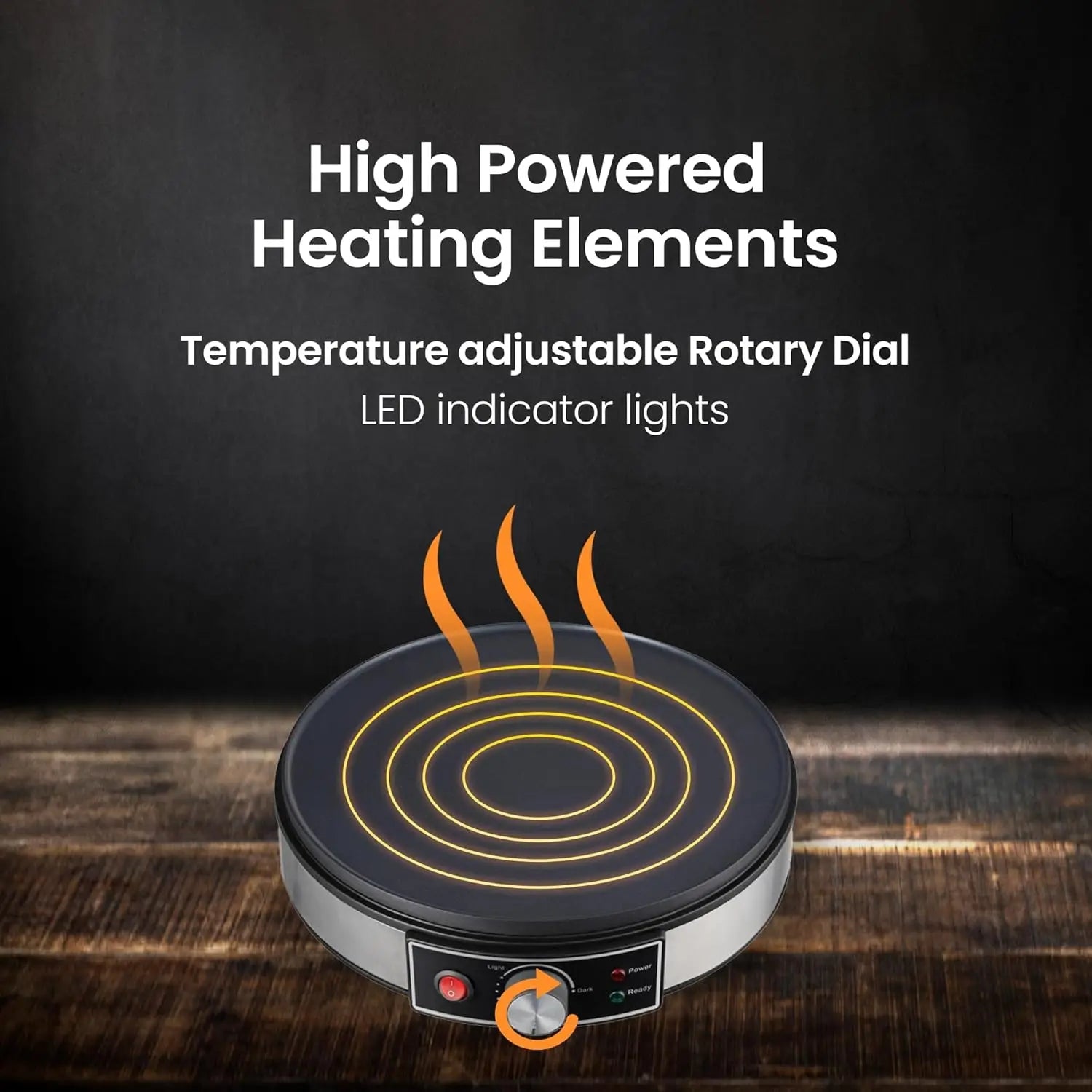 Electric Crepe Maker, Nonstick Multi-Function Tortilla Machine, Ideal for Crepes, Pancakes & Roti, Wooden Spatula & Batter Sprea