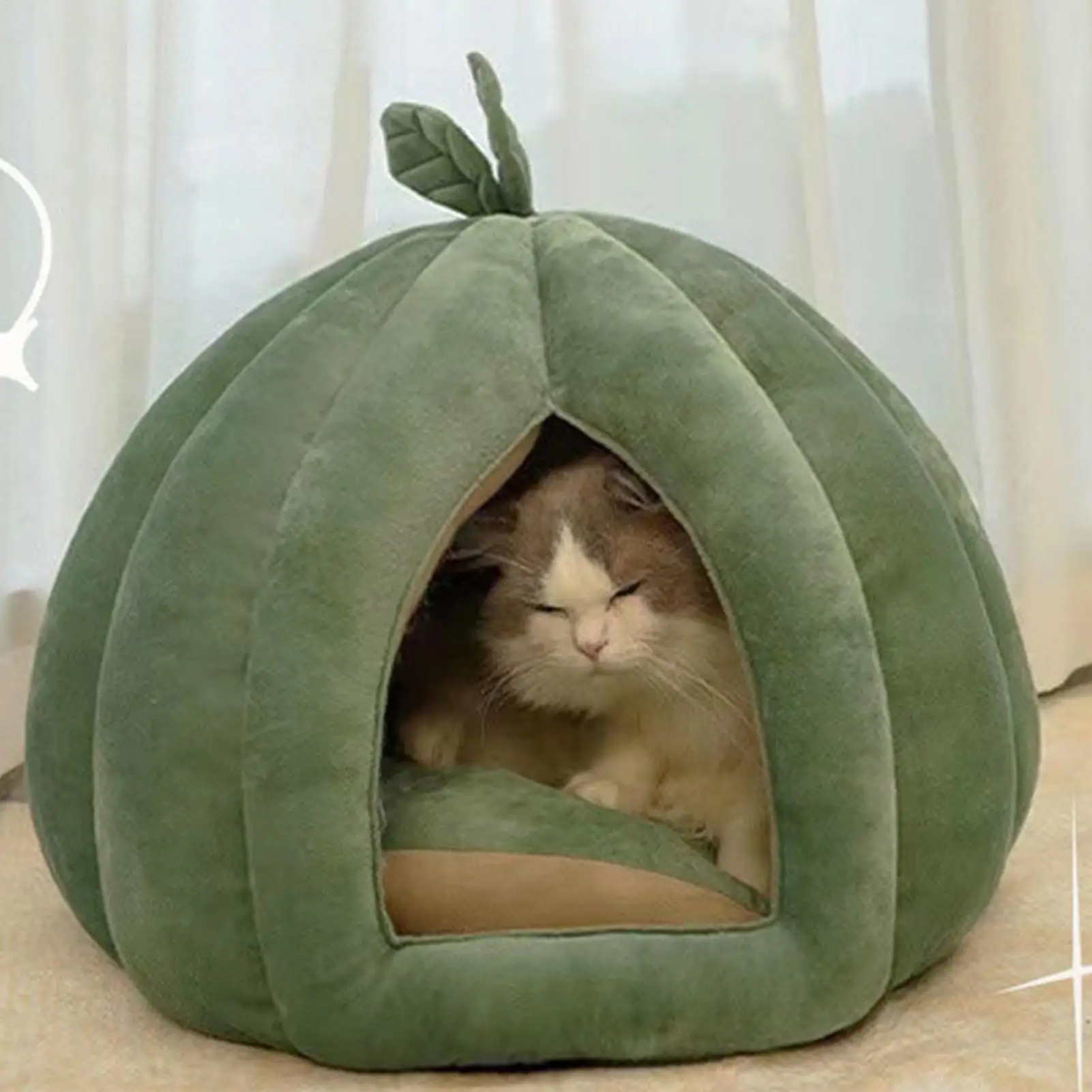 2.Lift Your Cat's Naptime: The unique pumpkin shape, cute and stylish at the same time, makes the cat's nest become a lovely scenery at home, adding fun to your life