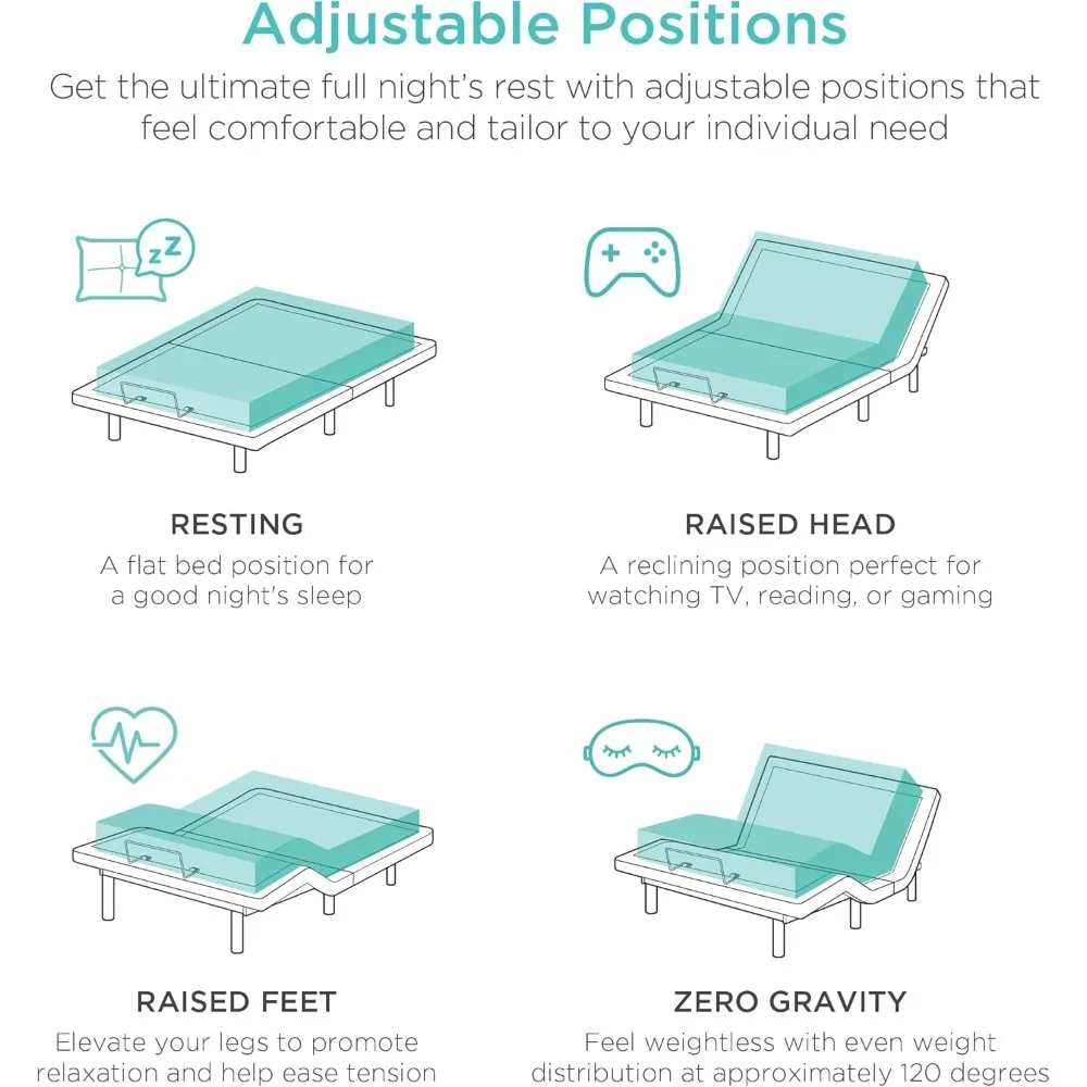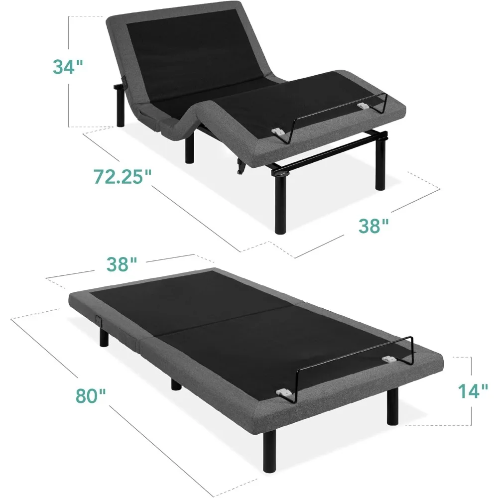 Ergonomic Twin XL Adjustable Bed Frame with Electric Base, Wireless Remote, Nightlight, and Massager Features