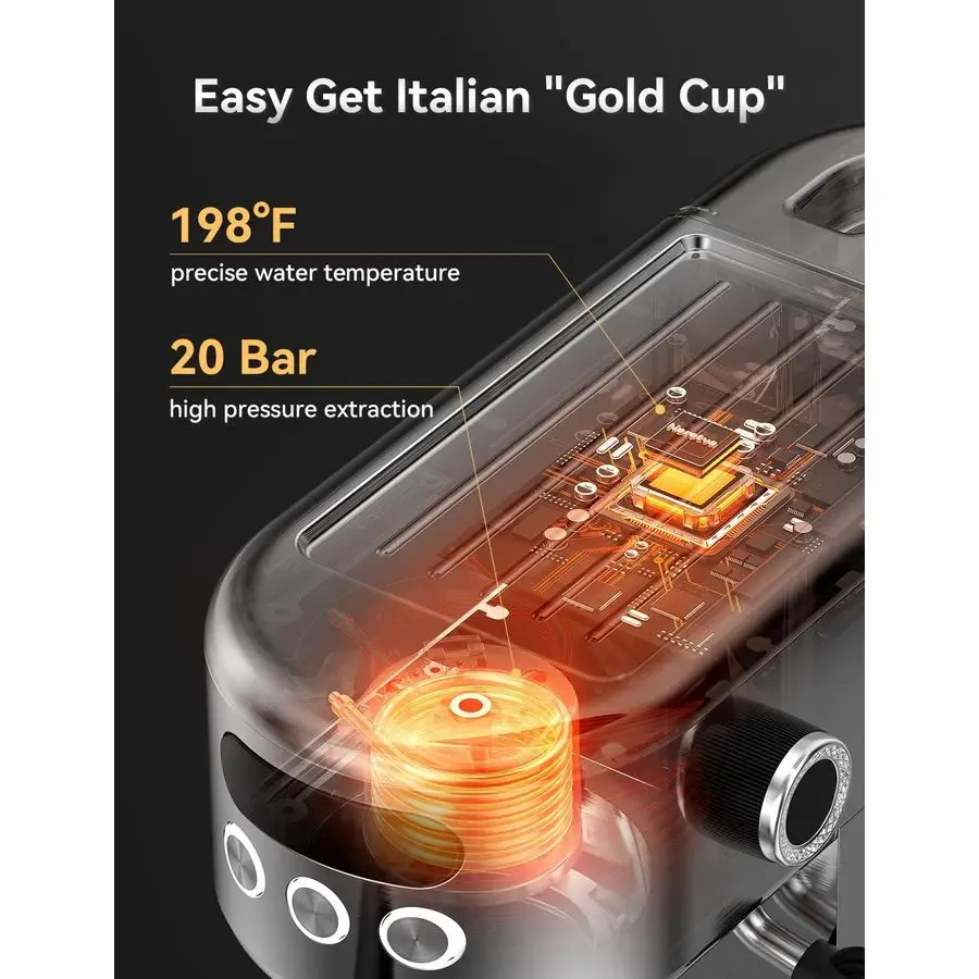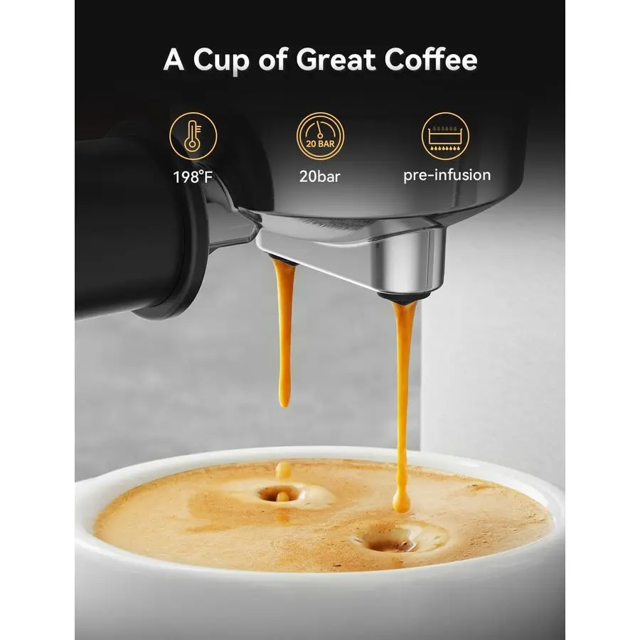 PROFESSIONAL 20 BAR PRESSURE Embrace baristastyle brewing with espresso machine With a 20bar pressure system and a robust 1350W boiler, the espresso maker extracts premium coffee for lattes, cappuccinos, and more.