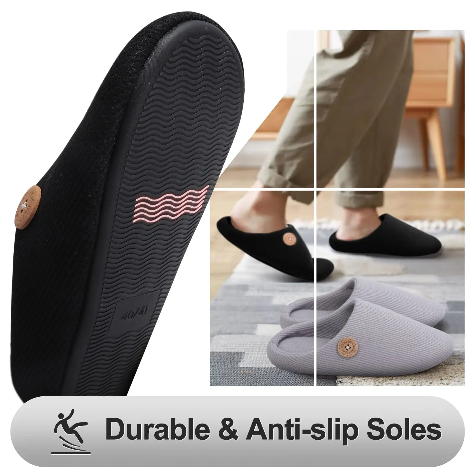 These slippers are made of high-quality and superior cotton-blend texture, combined with waffle design that could stop your feet from continuous stuffy feeling. The excellent and soft cotton material also absorbs the sweat from your feet quickly after a long day walking. They could be perfect for all seasons, especially for spring, summer and autumn.