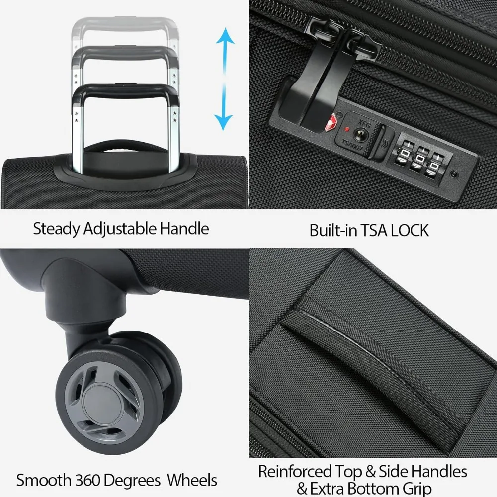 Expandable Softside Spinner Luggage with TSA Lock, Durable Rolling Suitcase for Travel with Built-in USB Port, Long-Lasting Ligh