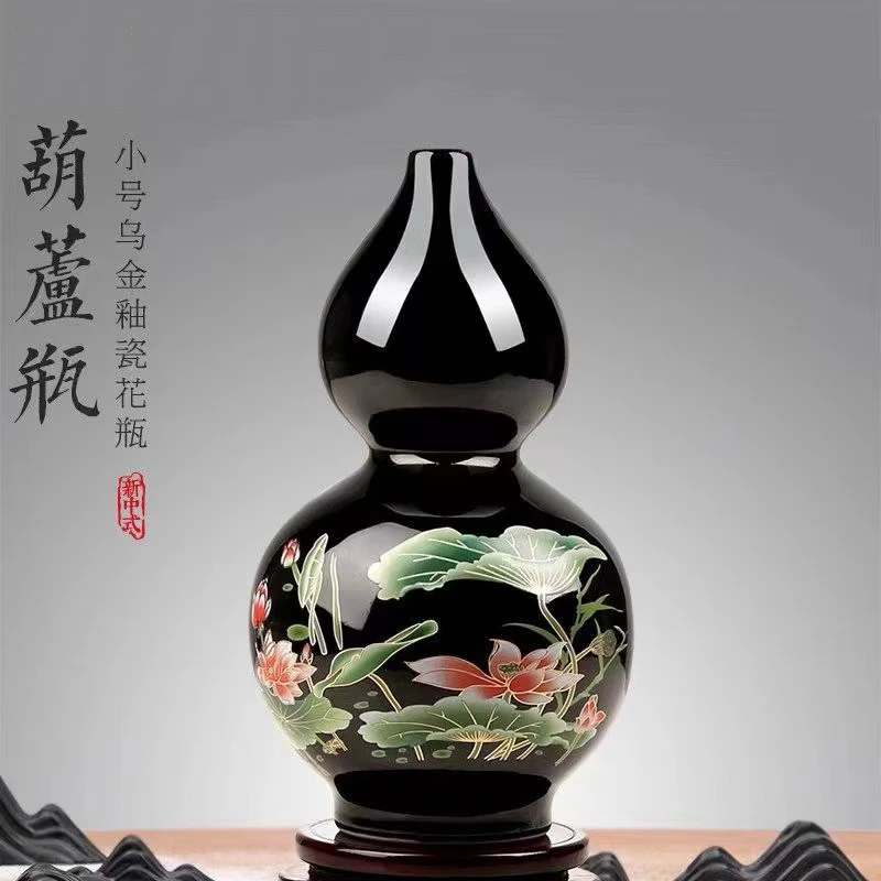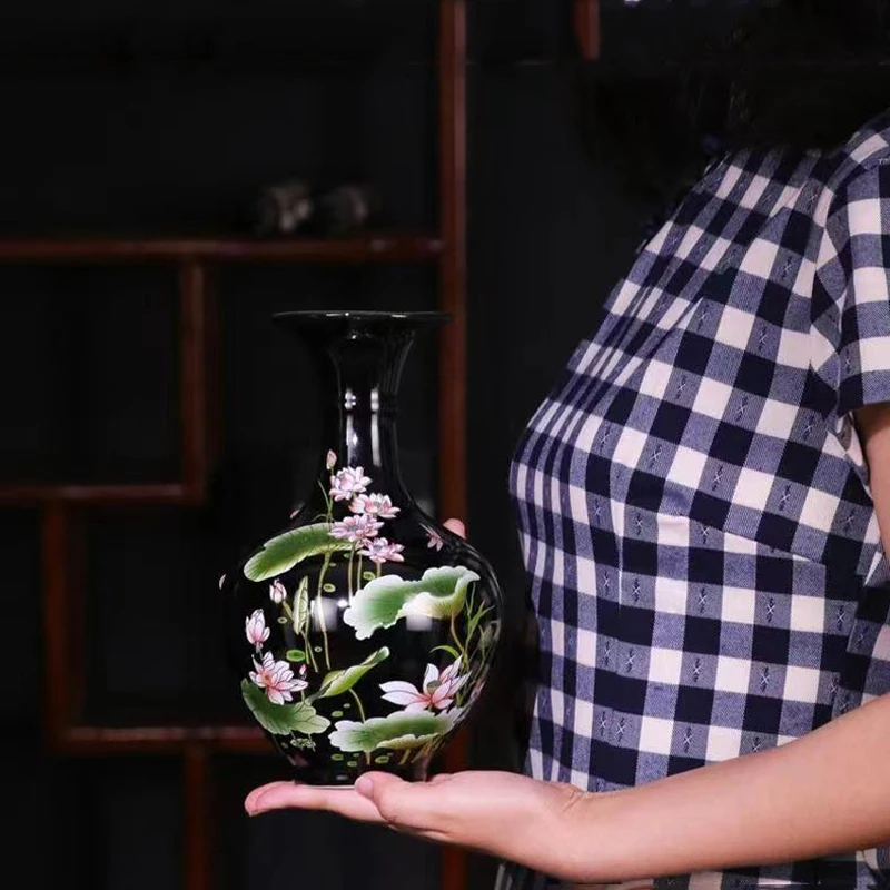 Exquisite Chinese Classical old hand painted Black porcelain lotus vase