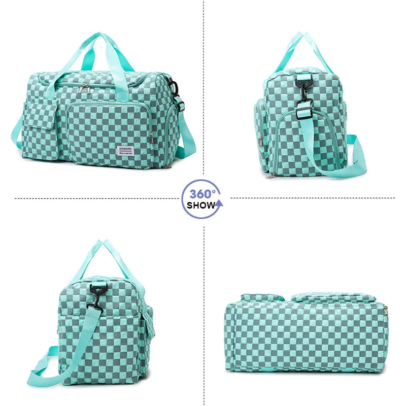 Fashion Large Capacity Checkerboard Pattern Duffle Handbag, Lightweight Travel Luggage Storage Bag, Portable Sports Fitness Bag