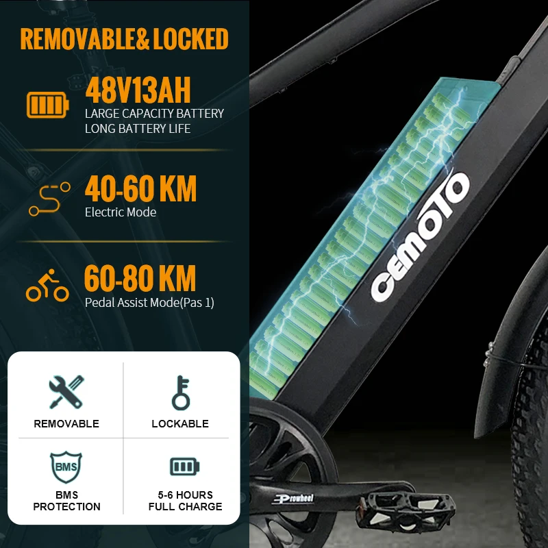 Fat Tire MTB Electric Bike for Adults,48V15.6ah Li-ion long range battery,1400W Peak BLDC motor 26“*4 E mountain bike man women