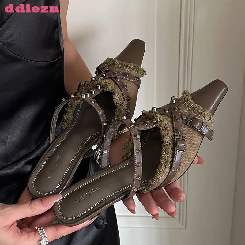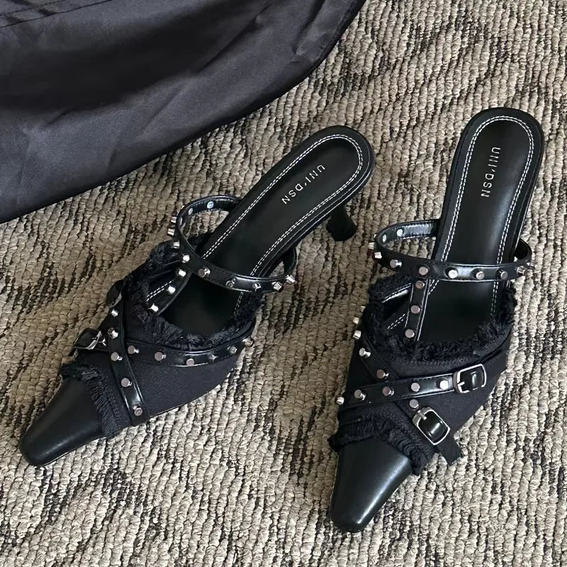 Female Shoes For Thin High Heels Pointed Toe Elegant Ladies Sandals Slingbacks Slides Fashion 2025 Footwear Black Women Pumps