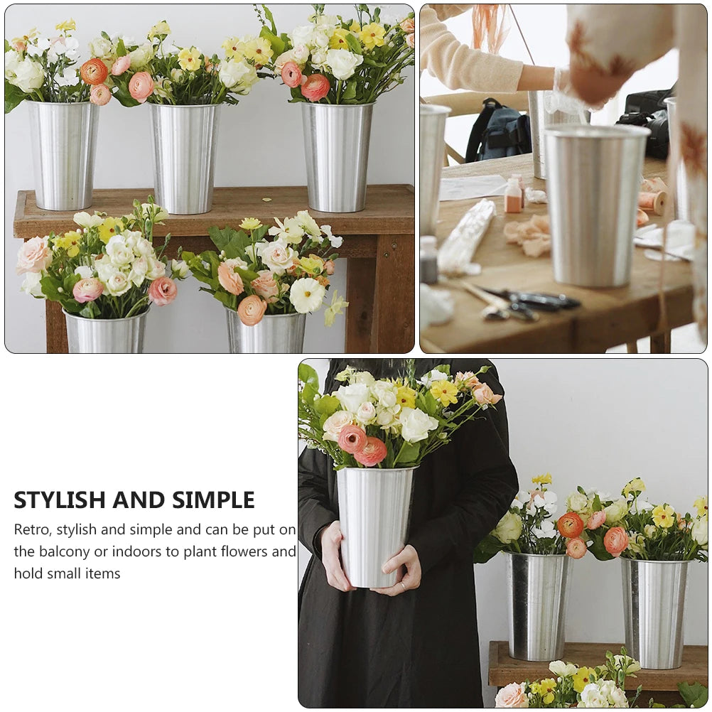 Flower Bucket Plant Pot Garden Vase Arrangement Planter Aluminum Flowerpot Home Decor Stylish Retro Balcony Indoor Plants