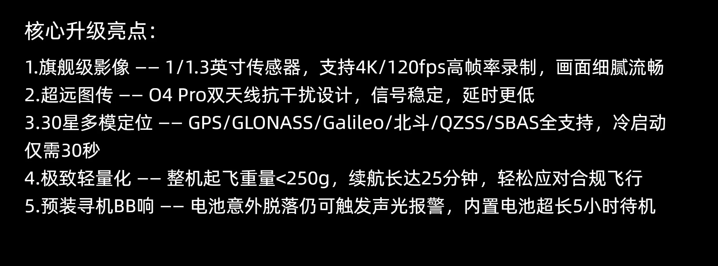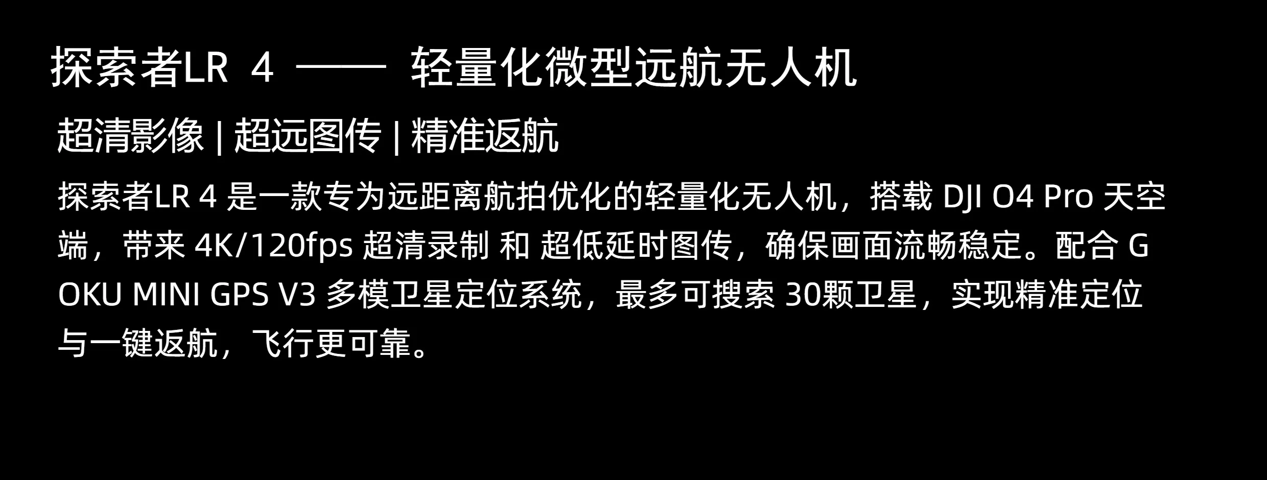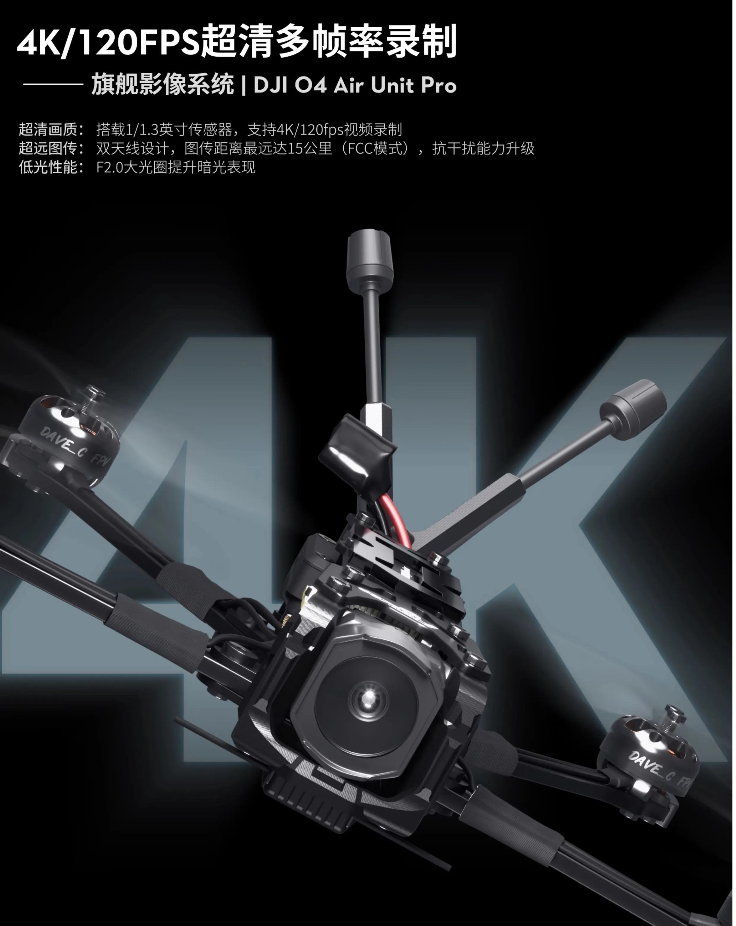 - Ultra-Long FPV Transmission: O4 Pro dual-antenna anti-interference design, ensuring stable signal and lower latency.