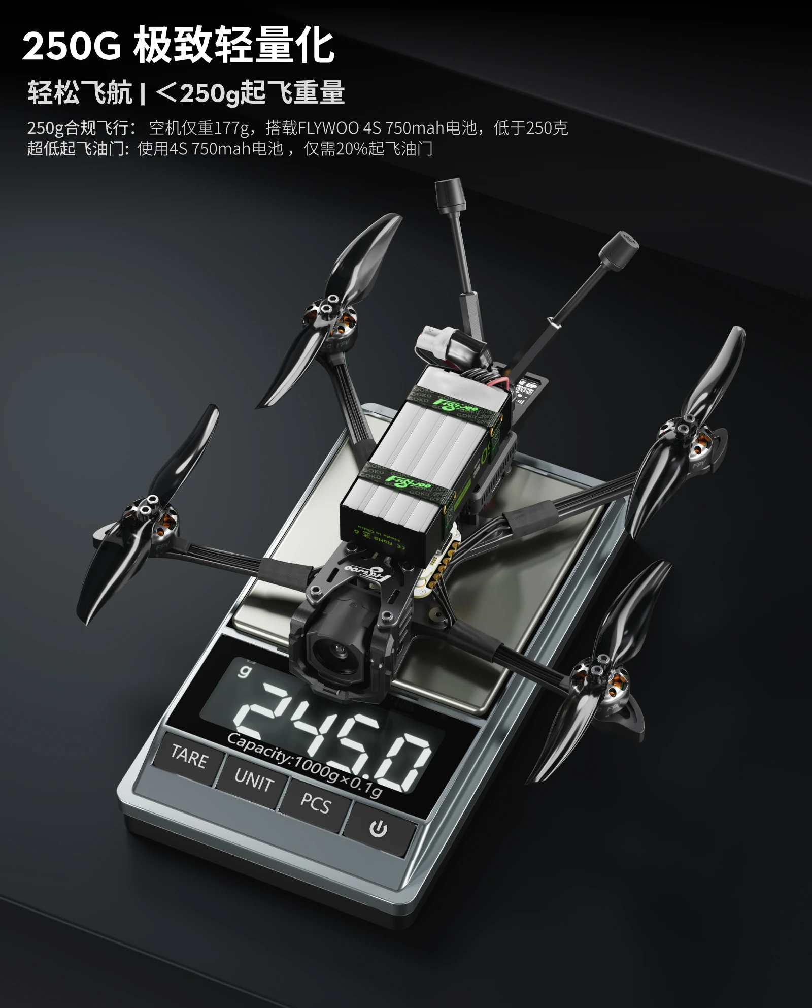 - Extreme Lightweight: Overall takeoff weight <250g, with a battery life of up to 25 minutes, easily meeting compliant flight requirements.