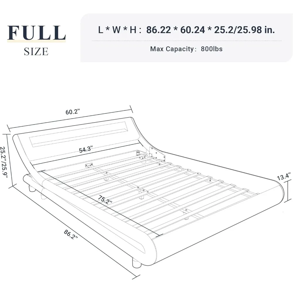 Full Size LED Platform Bed Frame with Adjustable Headboard, No Box Spring Required, Easy Assembly, Faux Leather in Black