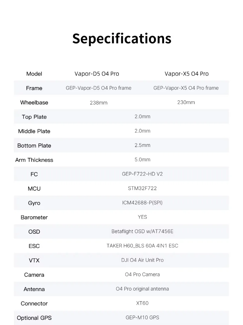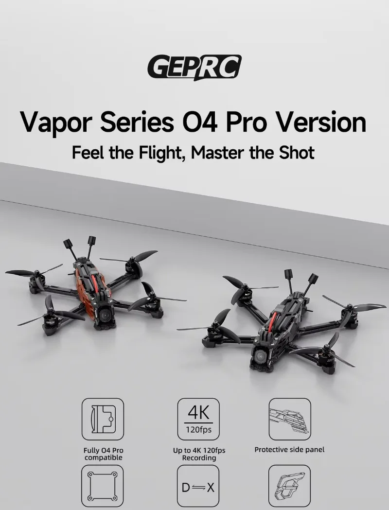 The GEPRC team has redesigned the Vapor series for optimal compatibility with the DJI O4 Air Unit Pro VTX.