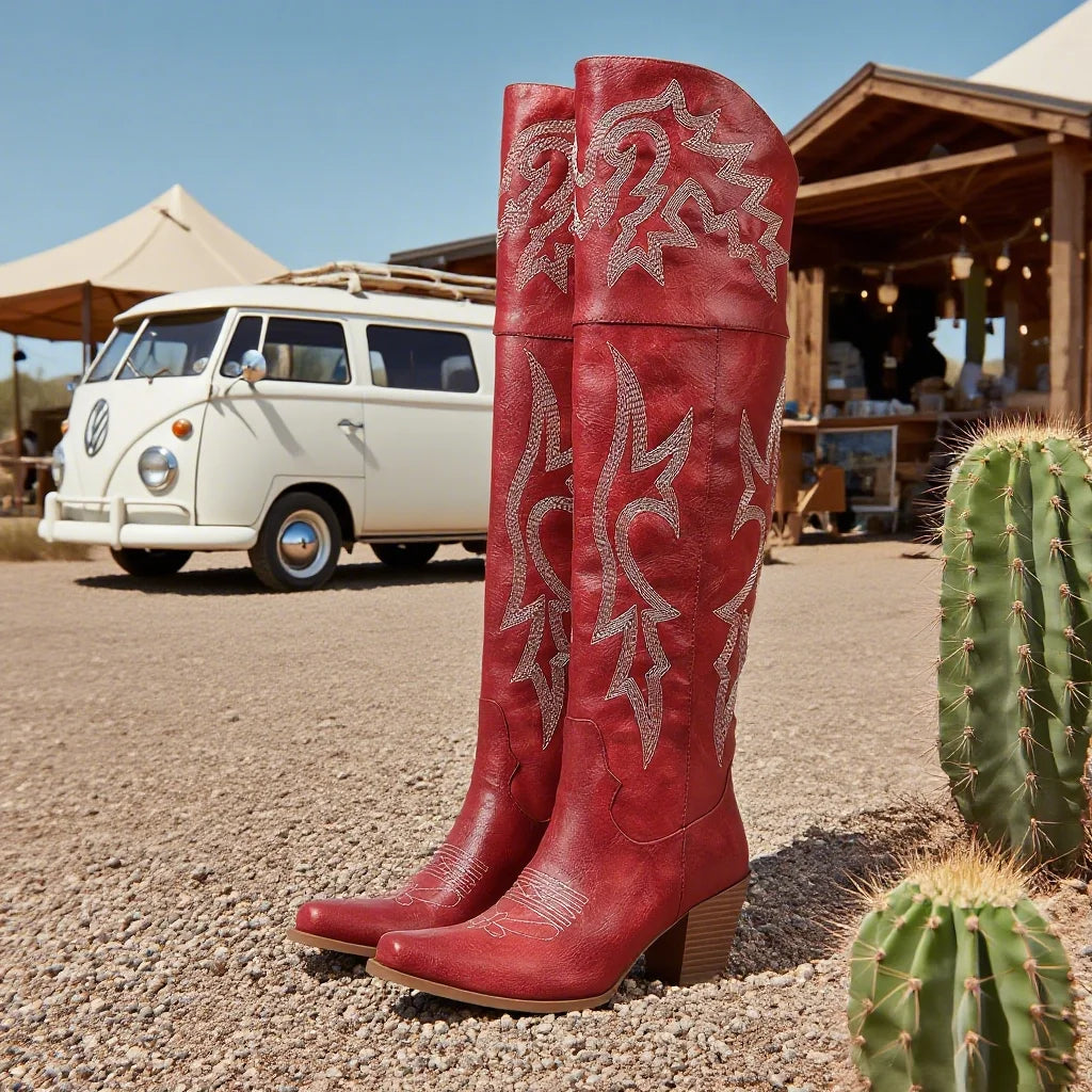 GIGIFOX Over the Knee Boots with Chunky Heel, Side Zipper Stylish Thigh High Cowboy Cowgirl Boots Ladies Outdoor Party Footwear