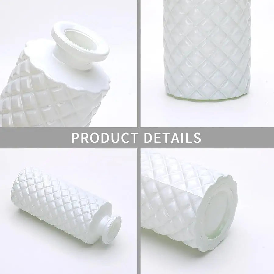 Glass Bud Vase Set in Bulk, 9pcs Mini Vintage Flower Vases for Wedding,White Relief Vase for Centerpieces,Home Table Flower Deco