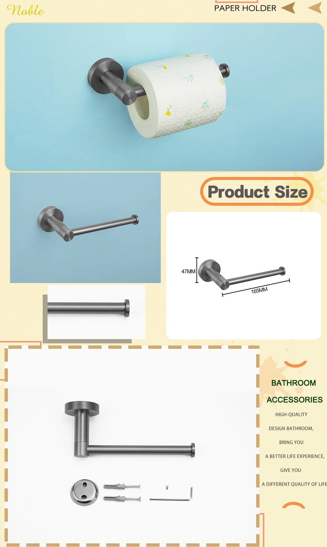 Towel Rack / Towel Bar / Toilet Brush Holder / Paper Hanger / Soap Dish / Tumber & Cup Holder / Robe Hook