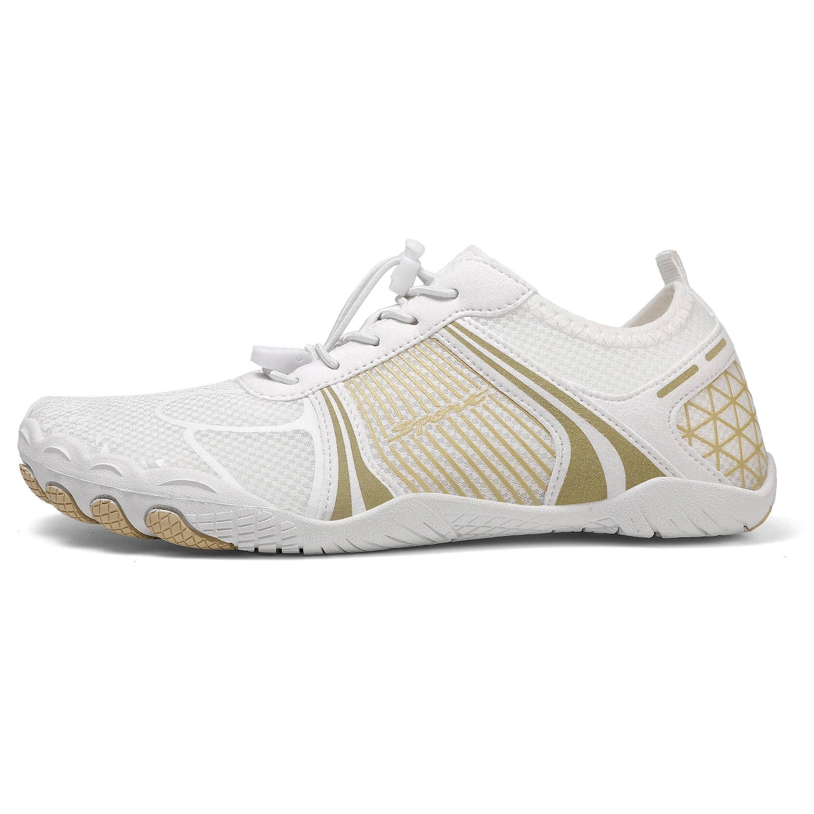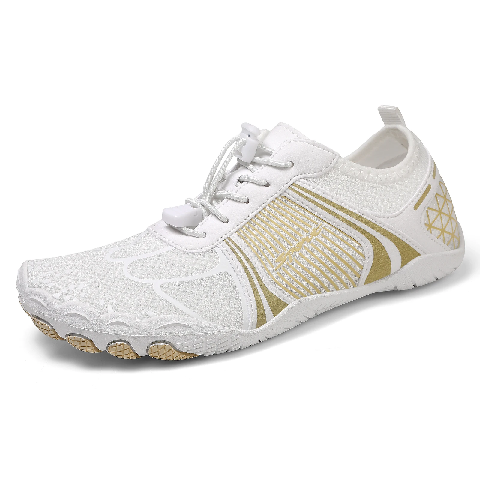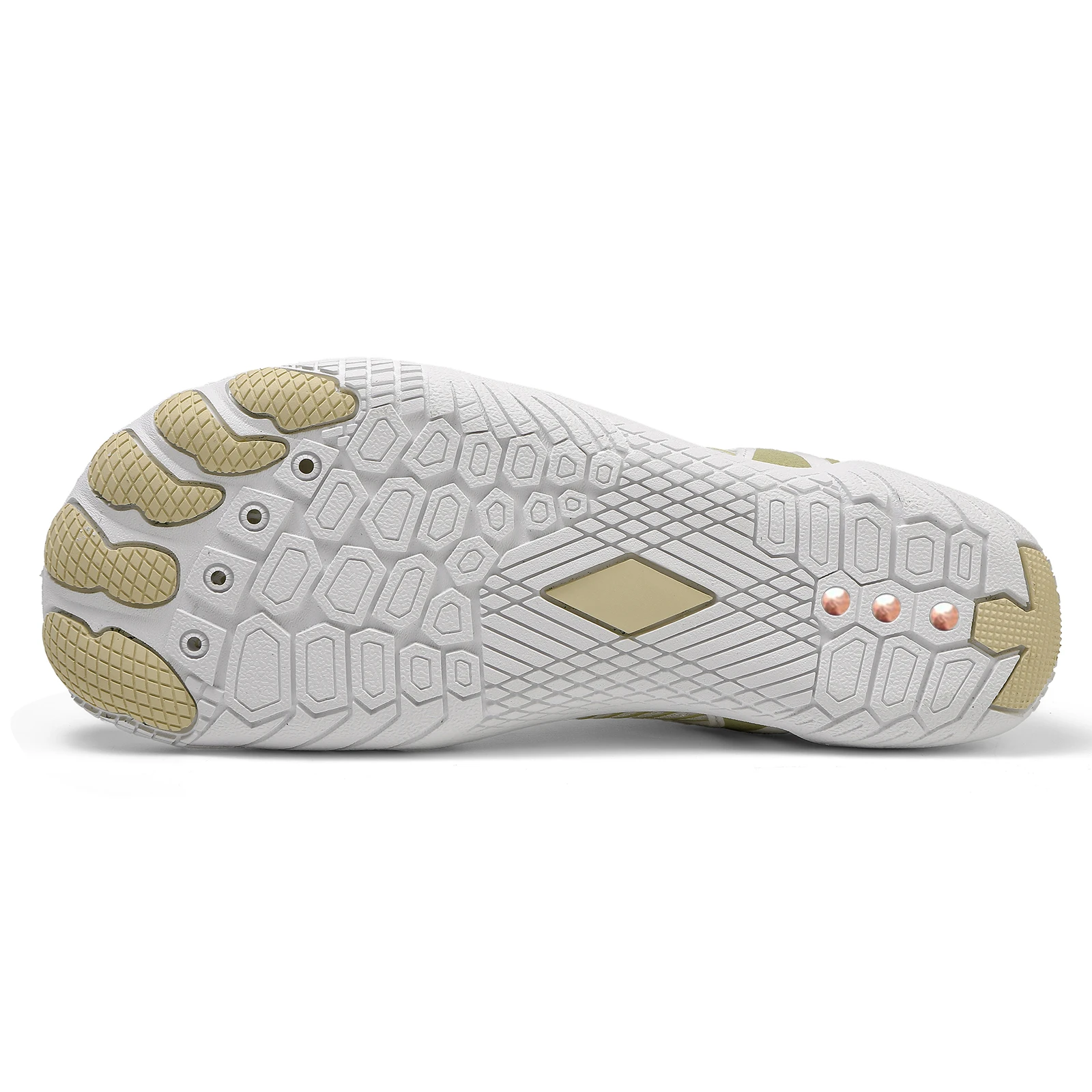 Features: 1.Copper-Enhanced Grounding: Designed with high-quality copper rivets, these earthing shoes effectively transfer beneficial earth negative ions to your body. A must-have grounding solution for enthusiasts seeking daily natural connection and overall well-being. 2.Breathable Comfort Upper: Featuring an innovative air layer and printed material, our grounding shoes offer exceptional airflow and moisture release. Keep your feet cool, dry, and comfortable for all-day barefoot shoes experience, wherever you go. 3.Elastic Lock Closure: The walking shoe adopts a flexible elastic toggle, making it effortless to put on and take off. Easily adjust the tightness for a fit and enjoy secure support tailored to your foot shape every time. 4.Drainage Sole Technology: Outfitted with specialized drainage holes in the sole, these water shoes efficiently expel excess moisture. Your feet stay dry and comfortable, making them ideal for both wet and dry adventures outdoors. 5.Ultra-Light Flexible Build: Lightweight and highly flexible, our barefoot shoes can be twisted freely without losing shape. Move with total freedom and experience an unrestrained, easy stride for active lifestyles. Specification: Origin: Material: Air layer + offset printing, rubber sole Color: White/Apricot