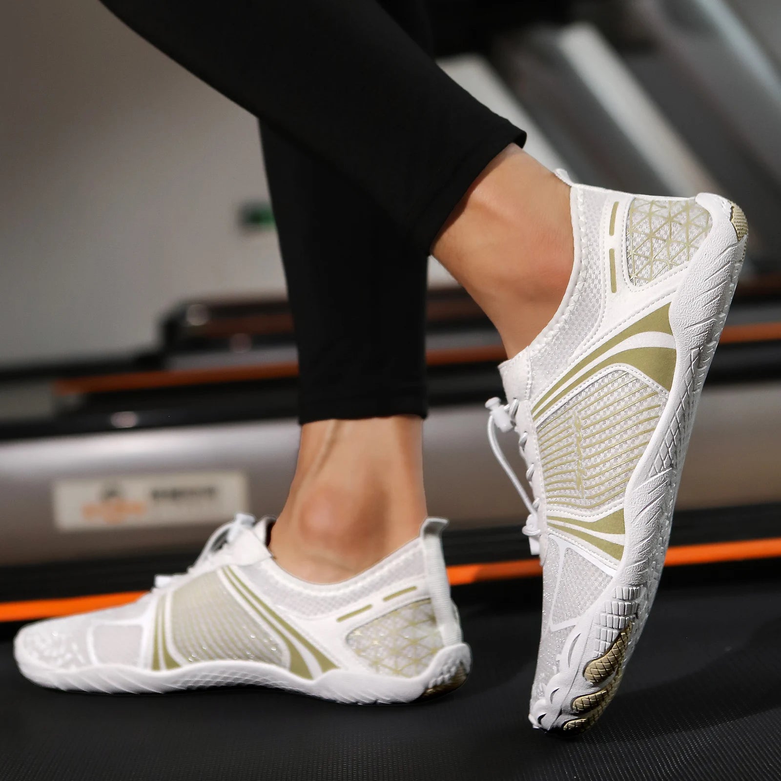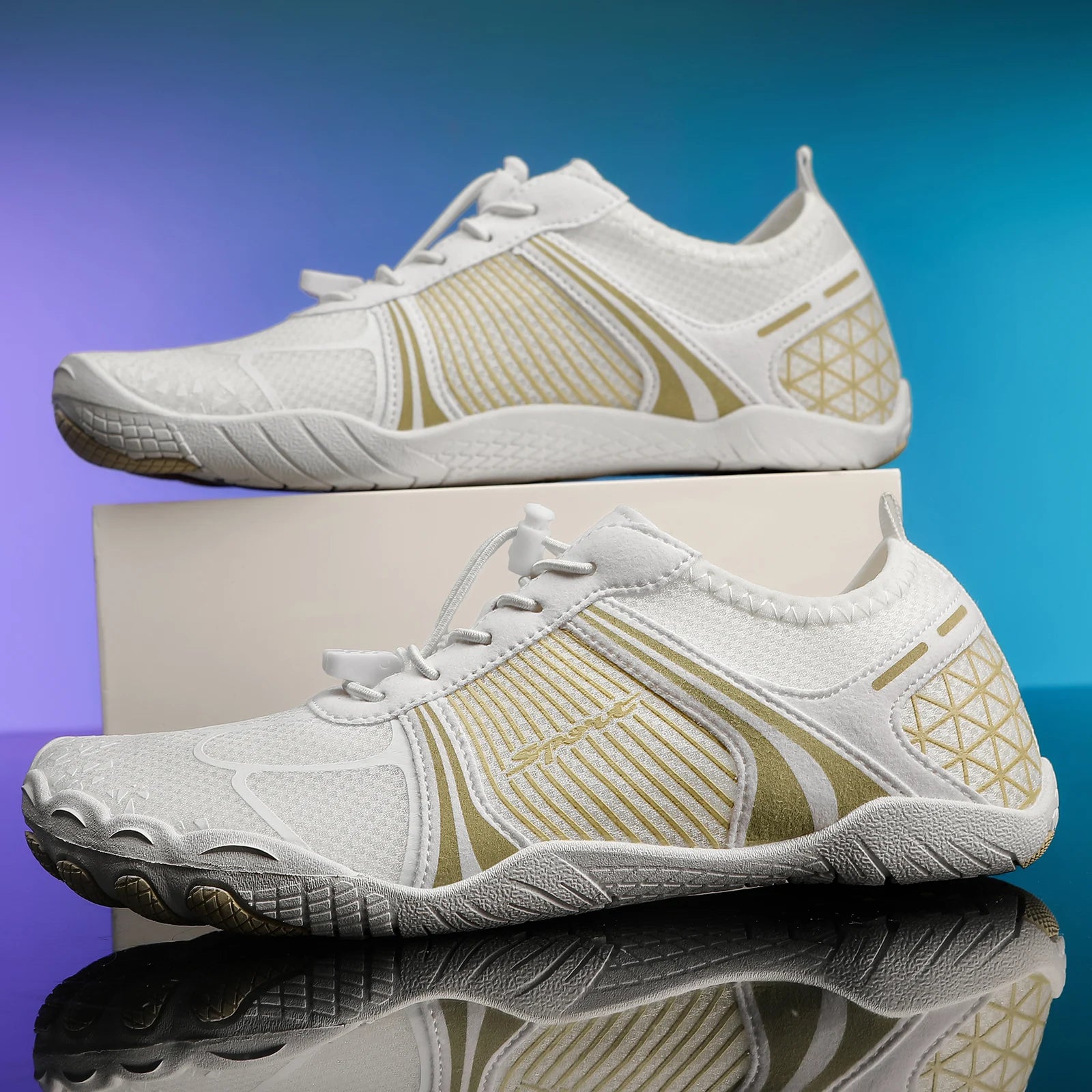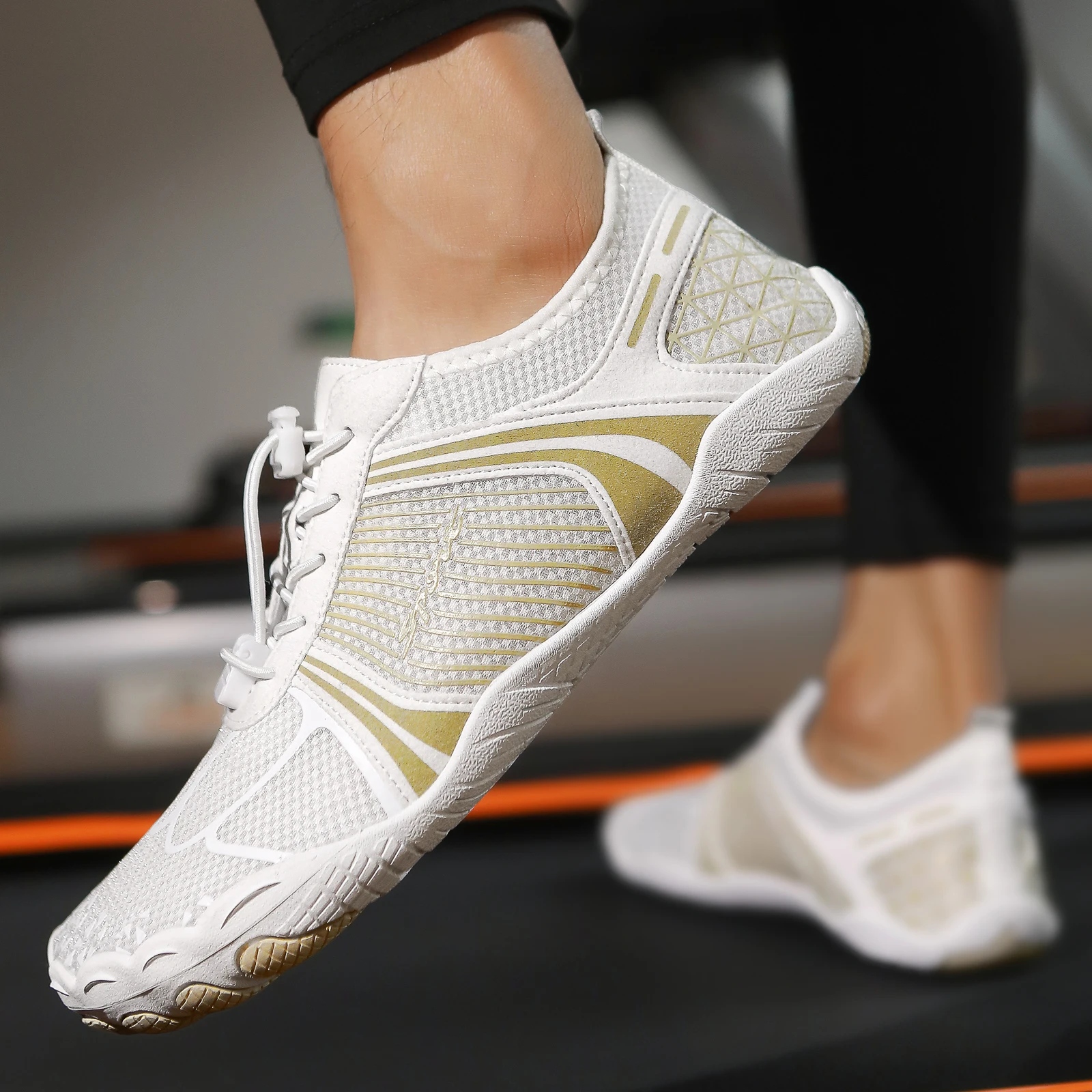 Features: 1.Copper-Enhanced Grounding: Designed with high-quality copper rivets, these earthing shoes effectively transfer beneficial earth negative ions to your body. A must-have grounding solution for enthusiasts seeking daily natural connection and overall well-being. 2.Breathable Comfort Upper: Featuring an innovative air layer and printed material, our grounding shoes offer exceptional airflow and moisture release. Keep your feet cool, dry, and comfortable for all-day barefoot shoes experience, wherever you go. 3.Elastic Lock Closure: The walking shoe adopts a flexible elastic toggle, making it effortless to put on and take off. Easily adjust the tightness for a fit and enjoy secure support tailored to your foot shape every time. 4.Drainage Sole Technology: Outfitted with specialized drainage holes in the sole, these water shoes efficiently expel excess moisture. Your feet stay dry and comfortable, making them ideal for both wet and dry adventures outdoors. 5.Ultra-Light Flexible Build: Lightweight and highly flexible, our barefoot shoes can be twisted freely without losing shape. Move with total freedom and experience an unrestrained, easy stride for active lifestyles. Specification: Origin: Material: Air layer + offset printing, rubber sole Color: White/Apricot