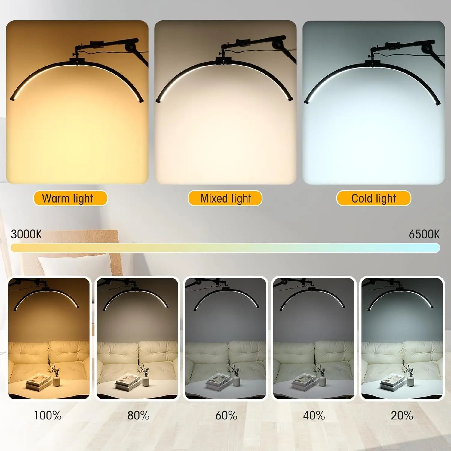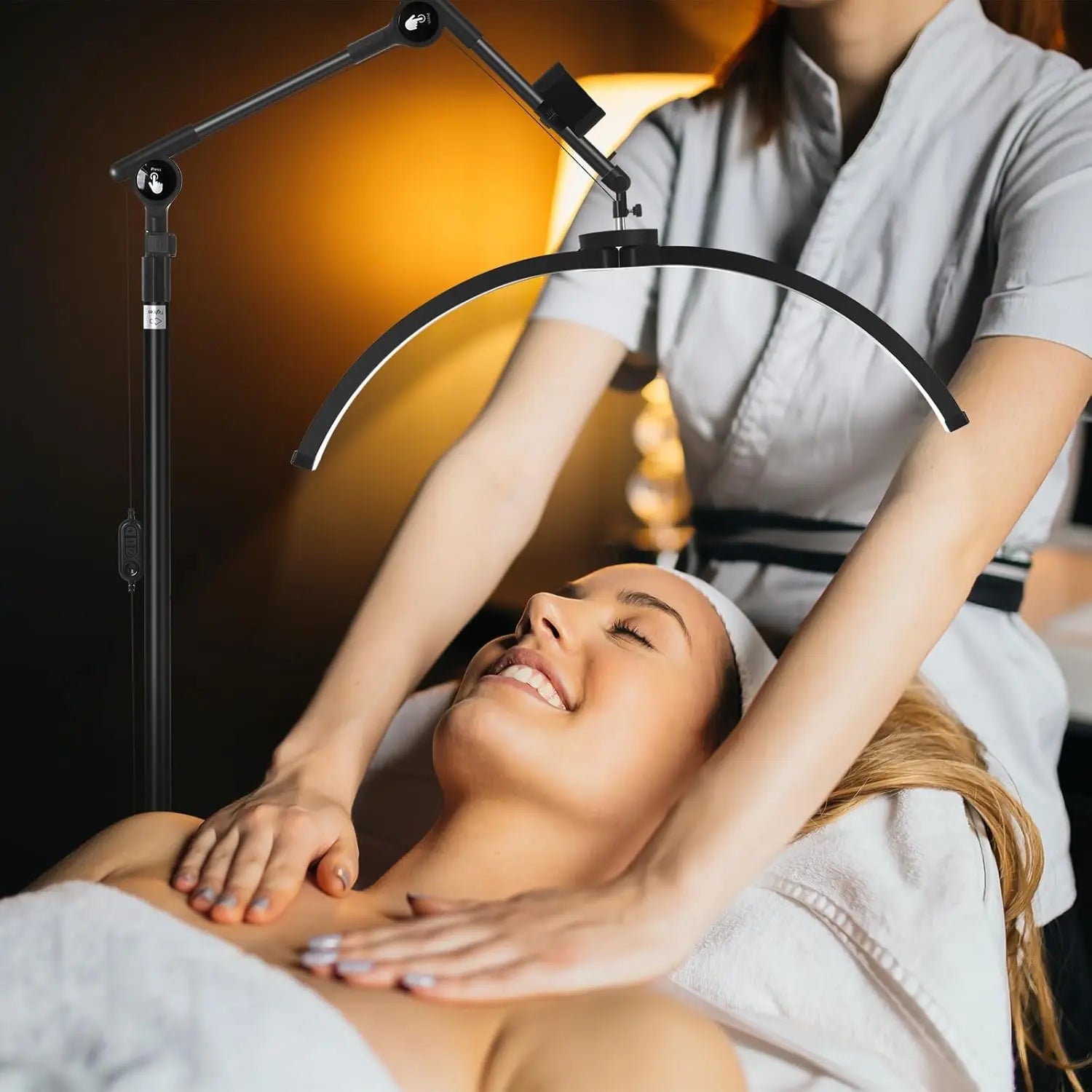 Half Moon LED Floor Lamp with Adjustable Height & Angle, Cool/Warm Light, Phone Holder for Eyelash & Skincare