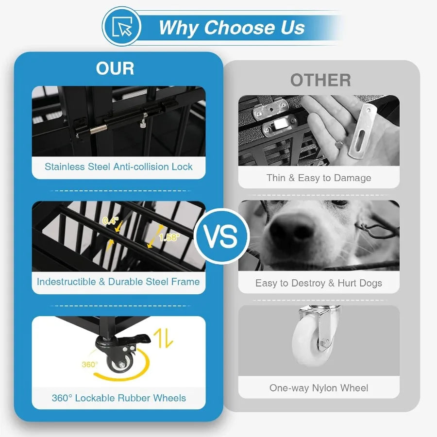Heavy Duty Dog Kennel 37-Inch with Indestructible Steel Frame Portable Design Featuring Wheels Double Doors for Easy Access Stu