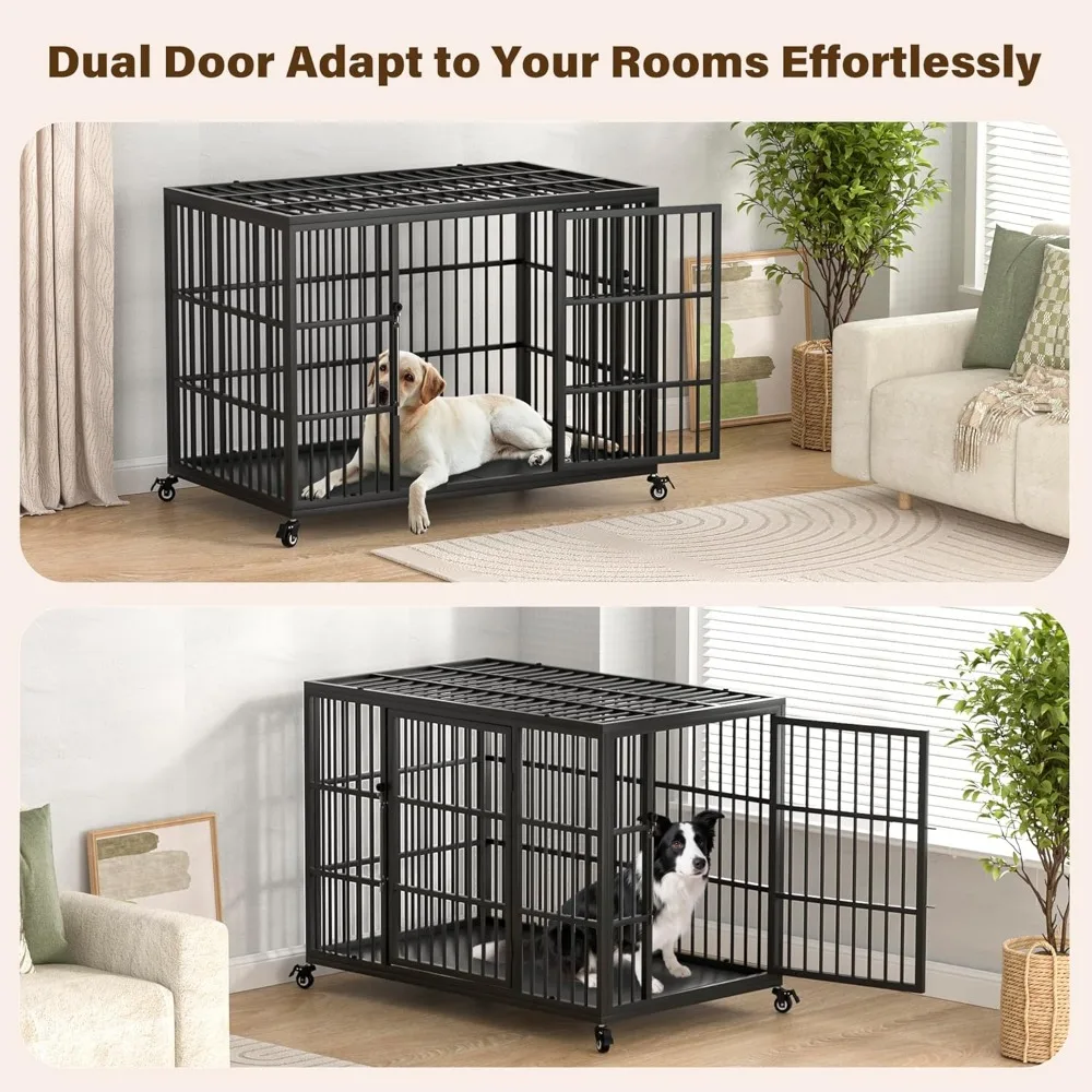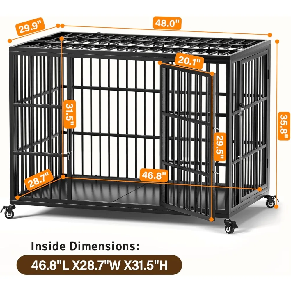 Heavy Duty XL Large Dog Crate for Large Dogs - Escape-Proof Steel Kennel with Self-Locking Latch, Suitable for Indoor Use
