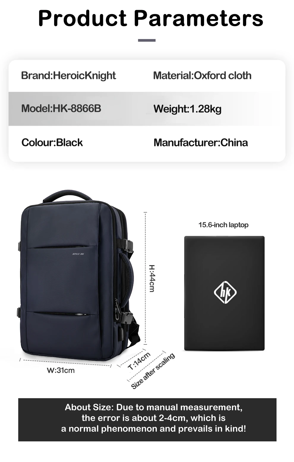 Heroic Knight Expandable Travel Backpack Men Work Backpack Big Capacity 15.6 Laptop Waterproof Backpack Casual College Schoolbag