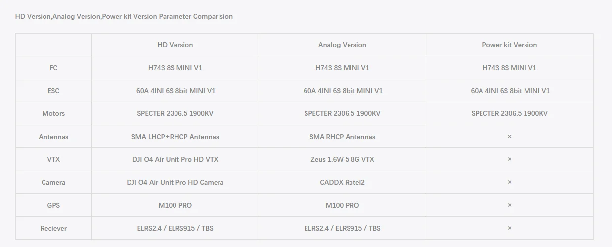 VTX Antennas ×2 (Not included with Power Kit; Analog version includes only 1 antenna)