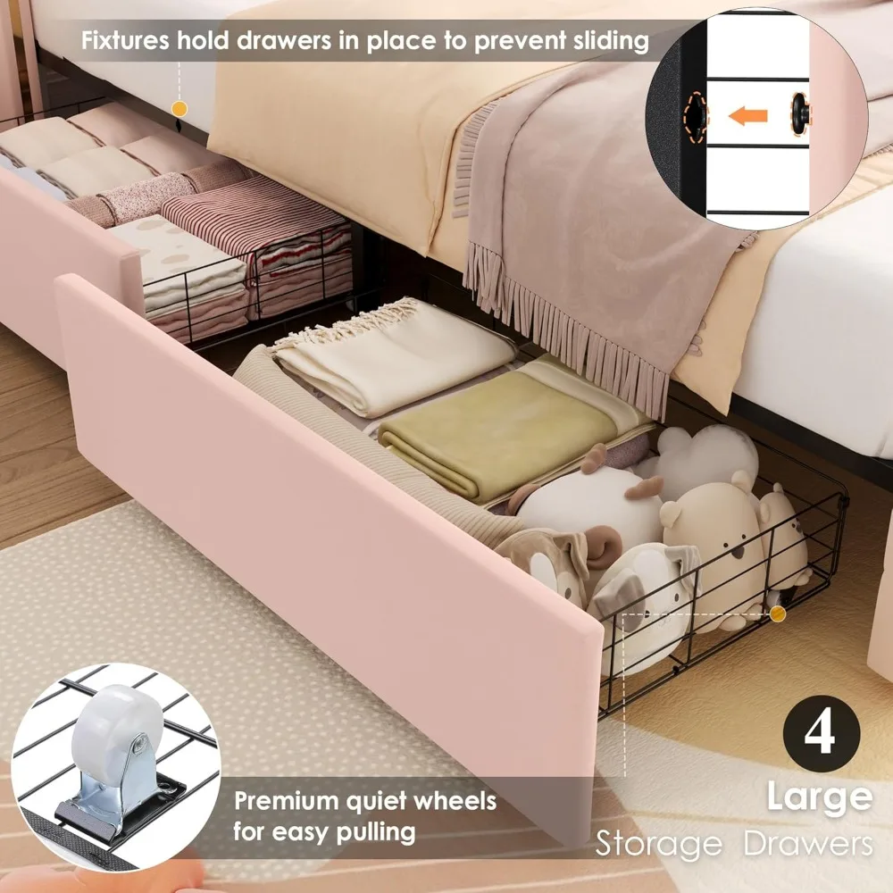 - TWIN BED FRAME WITH STORAGE: This twin bed comes with four spacious steel storage drawers, offering the perfect solution for storing toys, books, seasonal clothing, and bedding. Each drawer is equipped with smooth yet quiet wheels for easy sliding in and out, which is especially ideal for households with kids, creating a more organized play and sleep environment