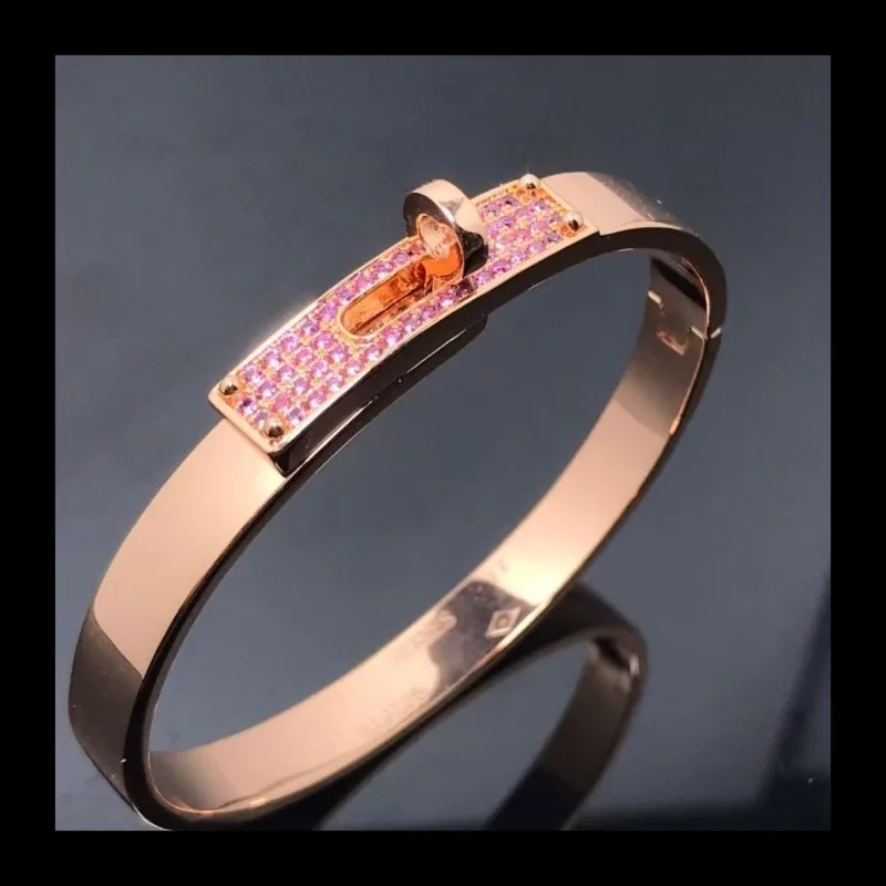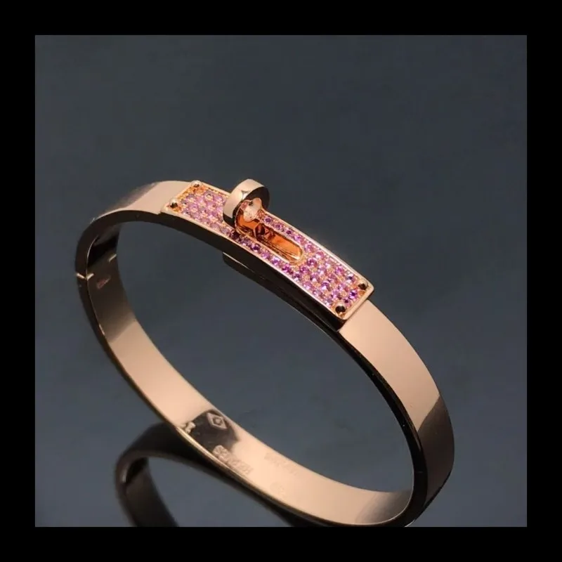 High Version Sterling Silver Kelly Pig Nose Full Diamond Bracelet Swing Button Gypsy Lock Rose Gold 18k Couple