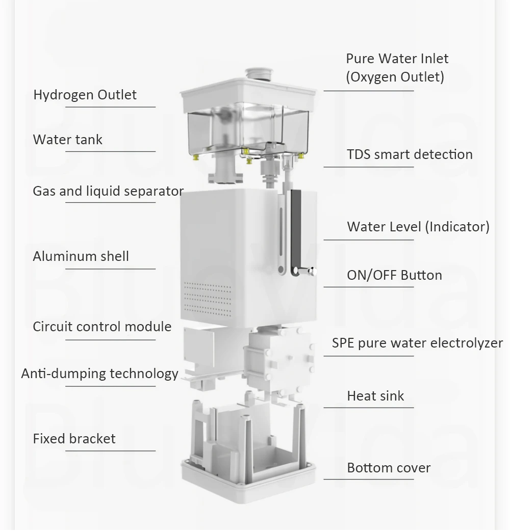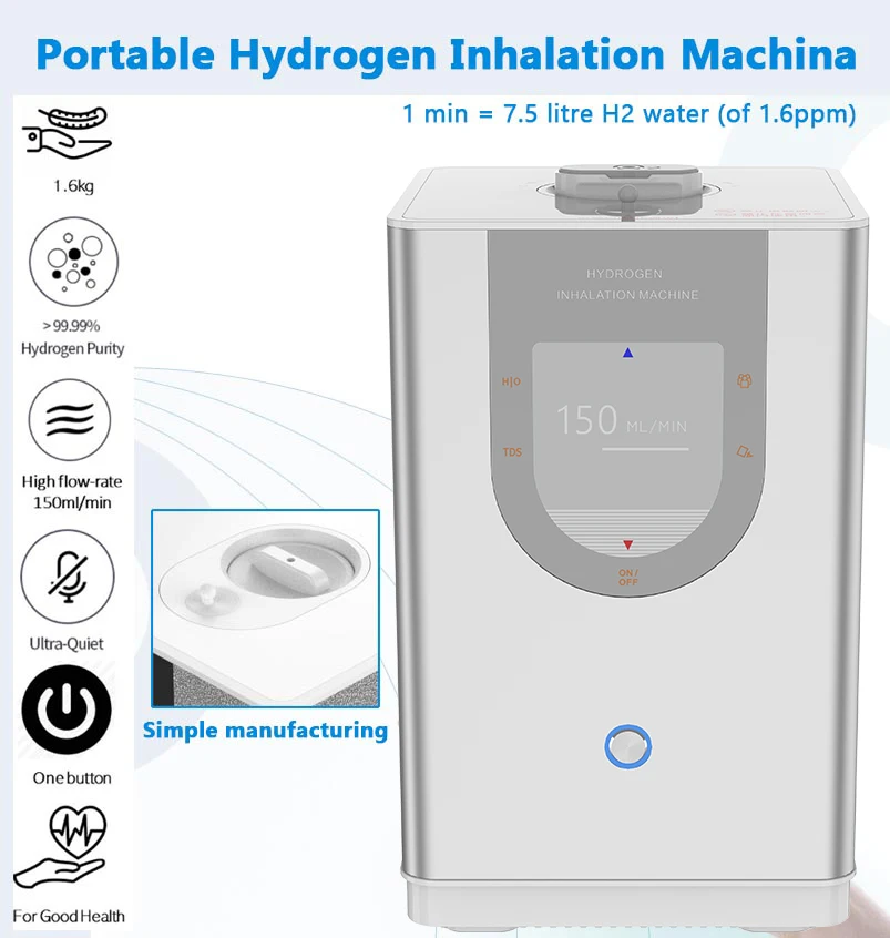 The Hydrogen Inhalation Machine is with the latest SPE(Solid Poly Electrolytic technology) + PEM(Proton Exchange Membrane) Dual Chamber solution. It has strong pressure resistance, strong hydrogen production ability, and does not produce harmful gases such as residual chlorine and ozone.