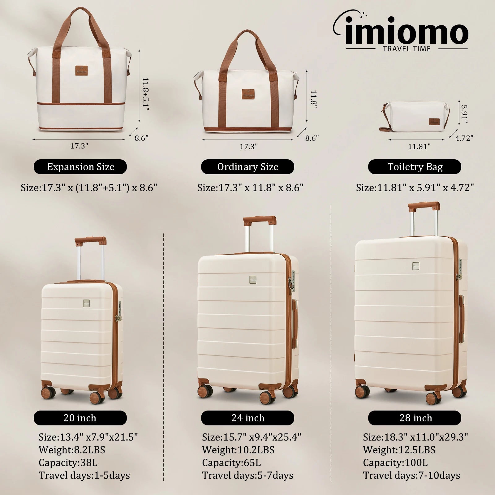 imiomo Travel Luggage Sets, Hard Shell Lightweight Carry on Suitcase with Travel Bag, TSA Lock, Durable Silent Spinner Wheels