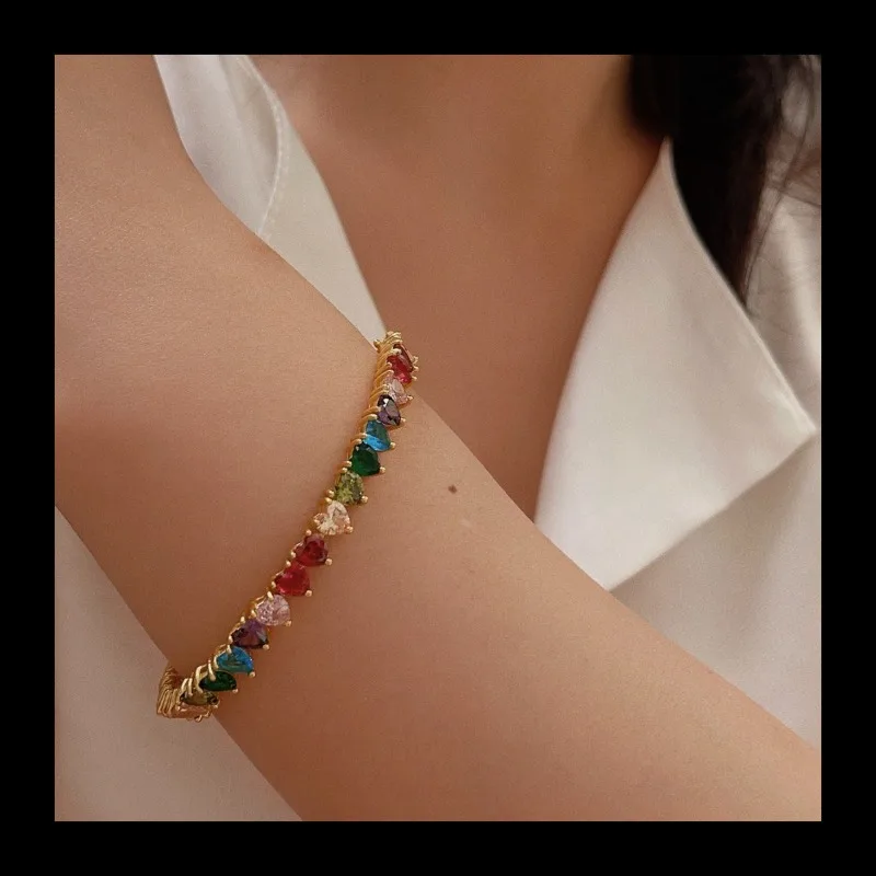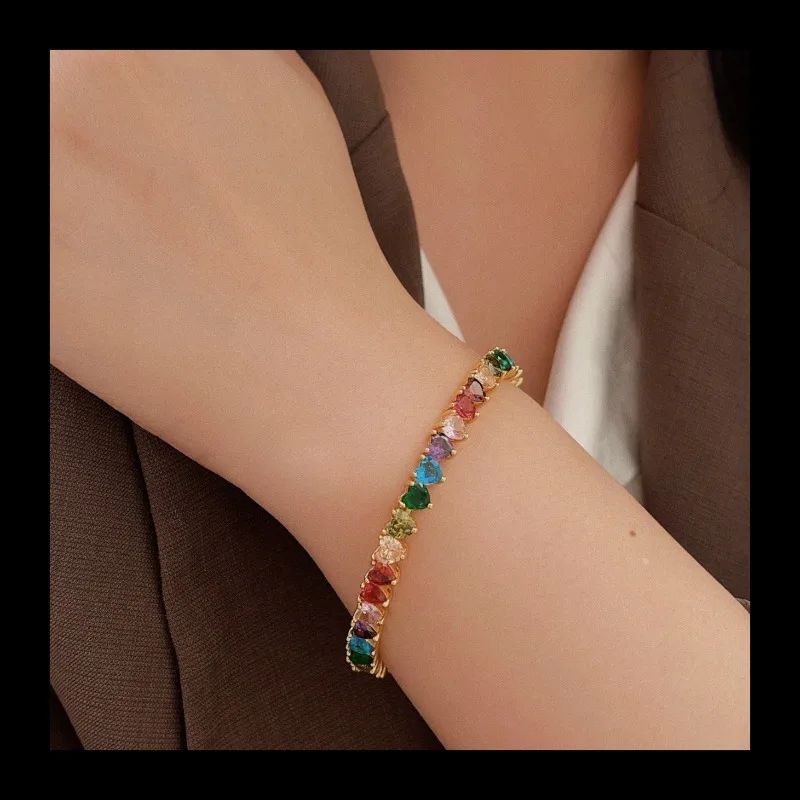 Ins Merry Mini Rainbow Gemstone S925 Sterling Silver Electroplated Gold Yellow Bracelet Luxury Versatile Jewelry