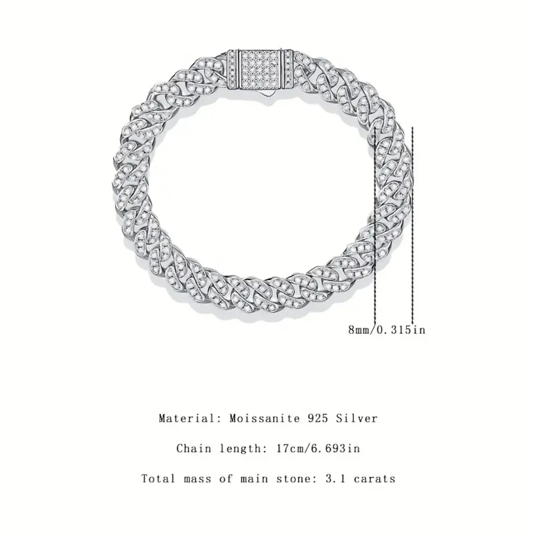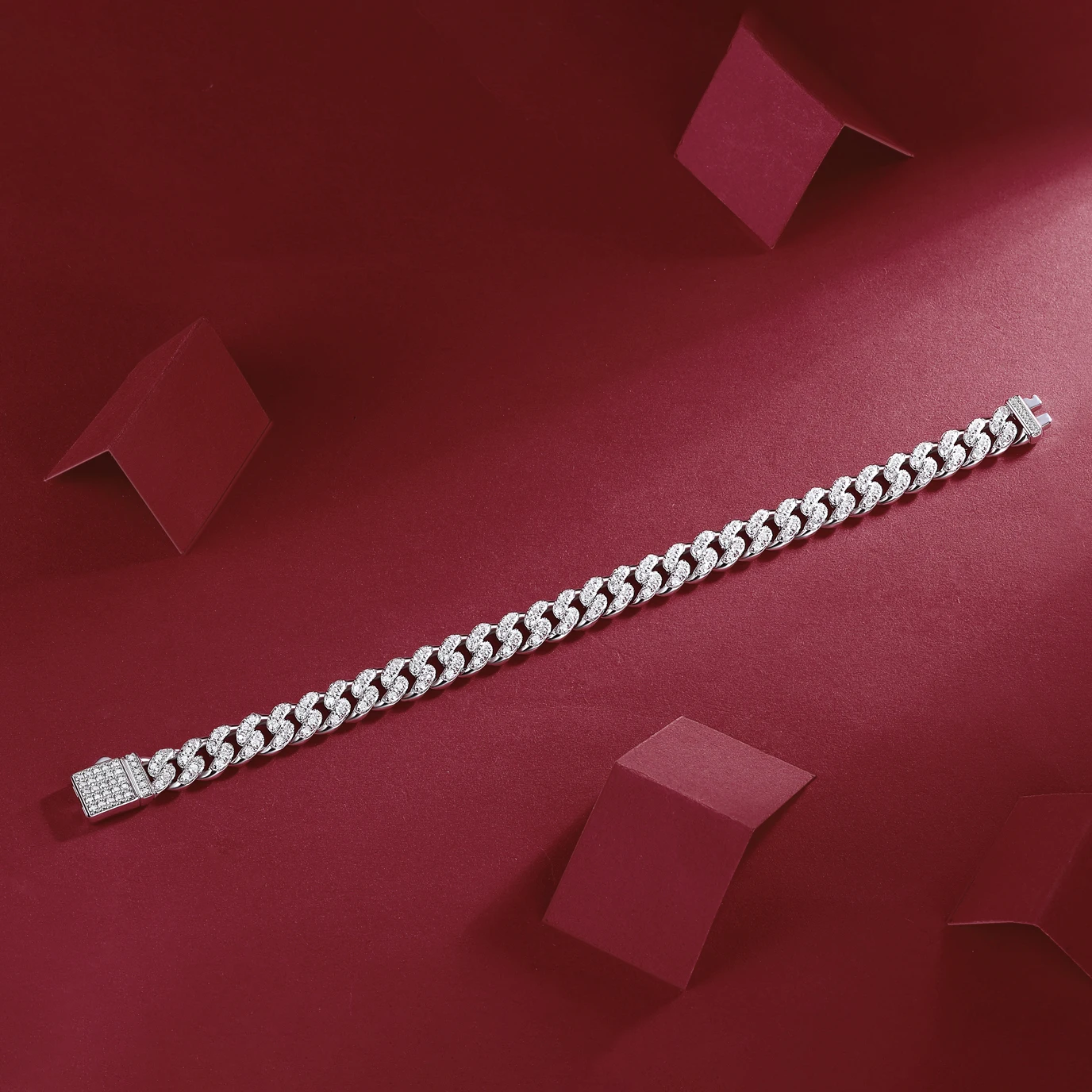 JIU ZUAN S925 Silver Moissanite Light Of Faith LuxuriousBracelet For Men And Women, Cuban Chain,For Engagement, Anniversary,