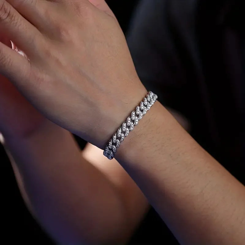 JIU ZUAN S925 Silver Moissanite Light Of Faith LuxuriousBracelet For Men And Women, Cuban Chain,For Engagement, Anniversary