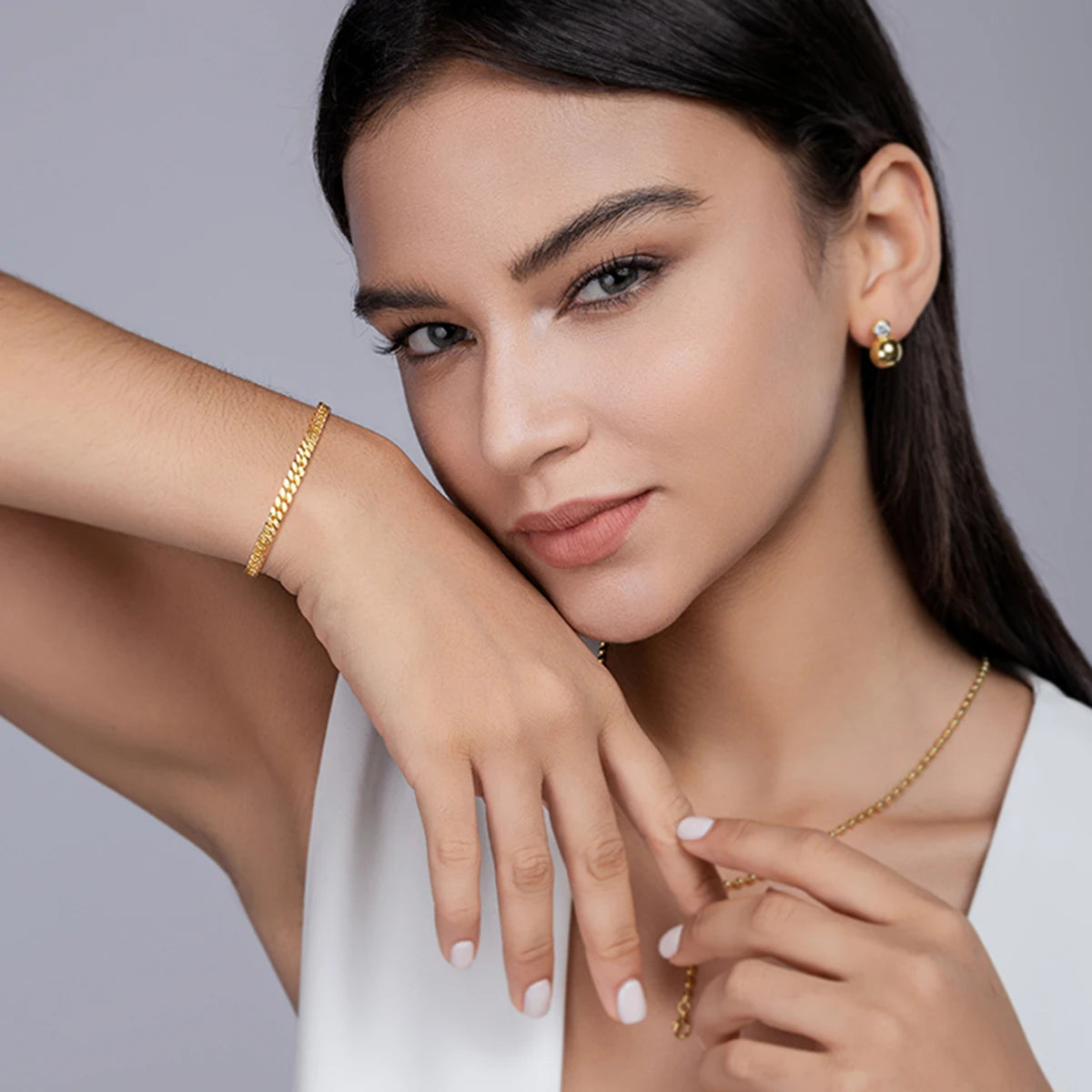 JIUZUAN 4mm Moissanite Bracelet for Women, S925 Silver, 18K Gold Plated, D-Color VVS1, Hypoallergenic Christmas Gift Jewelry