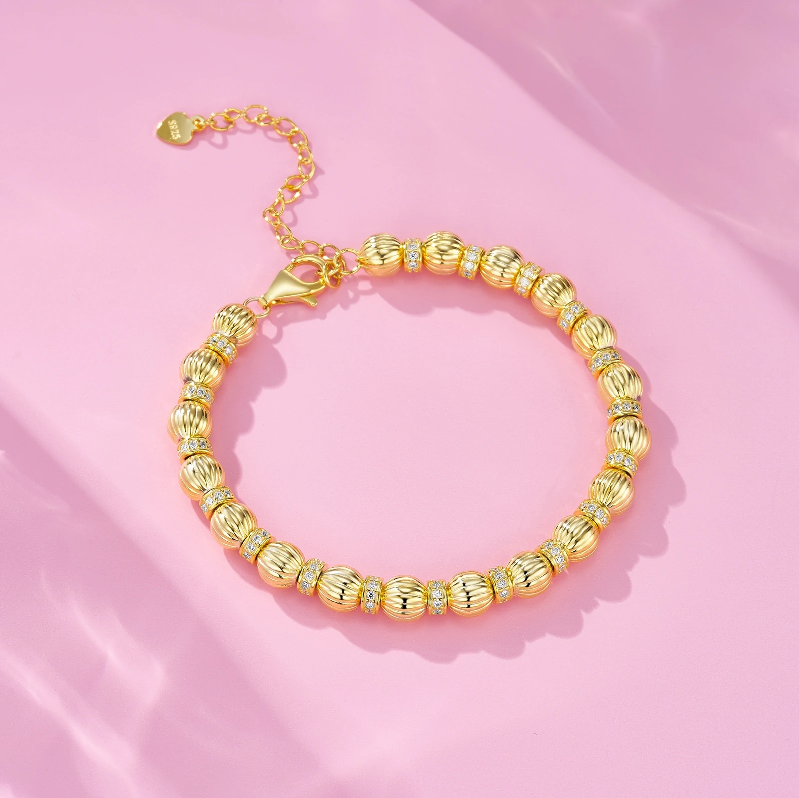 JIUZUAN Luxury Sparkling Moissanite Pumpkin Bead Bracelet S925 Silver Plated 18K Gold Matte Finish Wedding Moissanite Bracelet