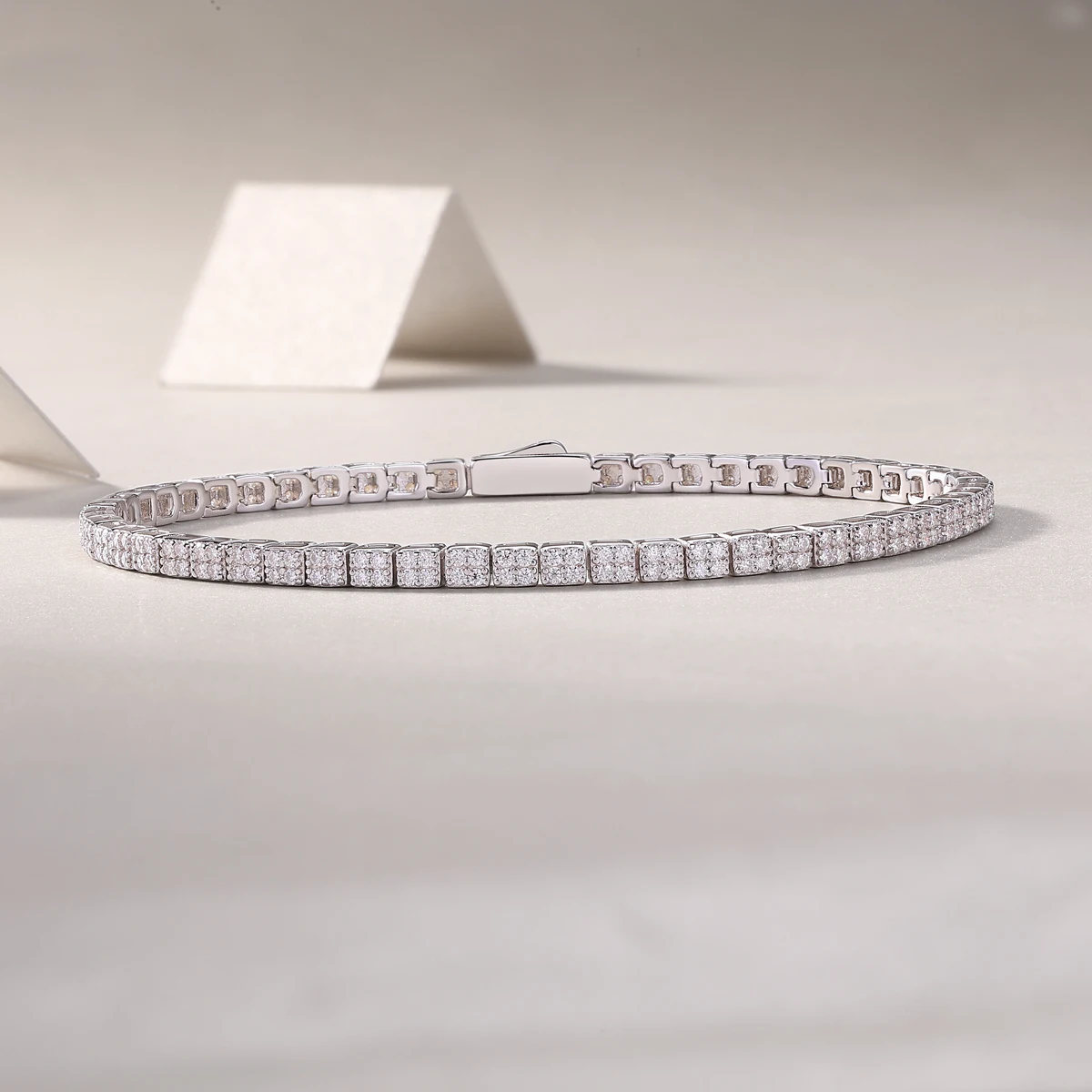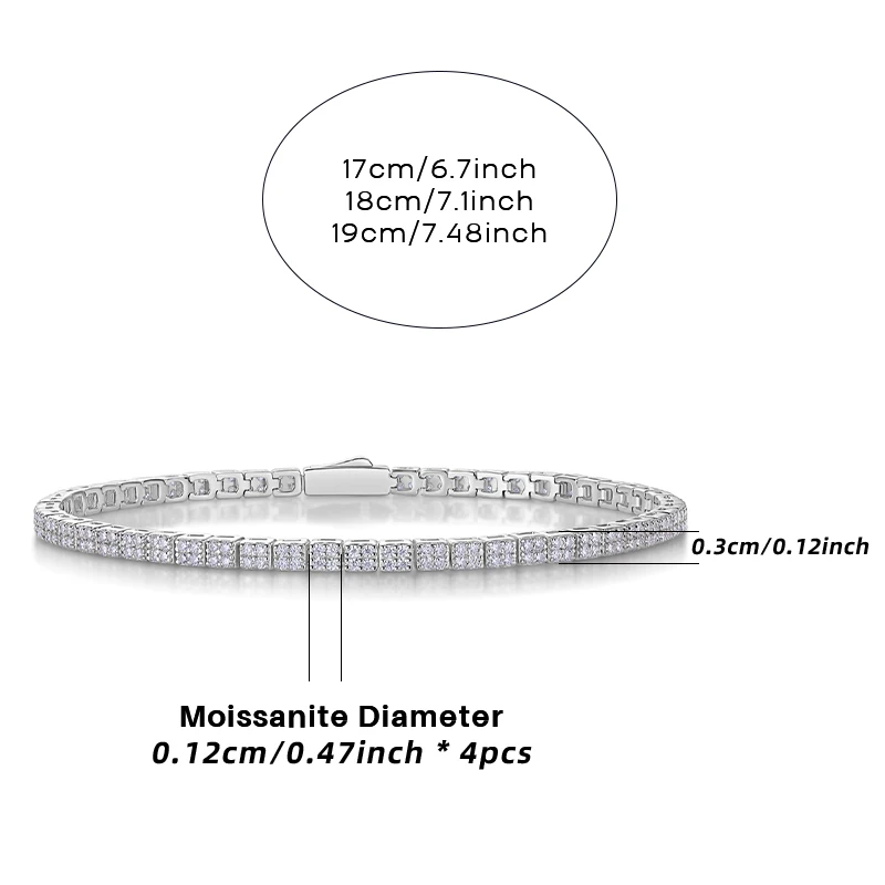 JIUZUAN Moissanite Bracelet 925 Silver 18K Gold Plated Iced Out Cuban Link Luxury Gift for Men Women Comes with Certificate