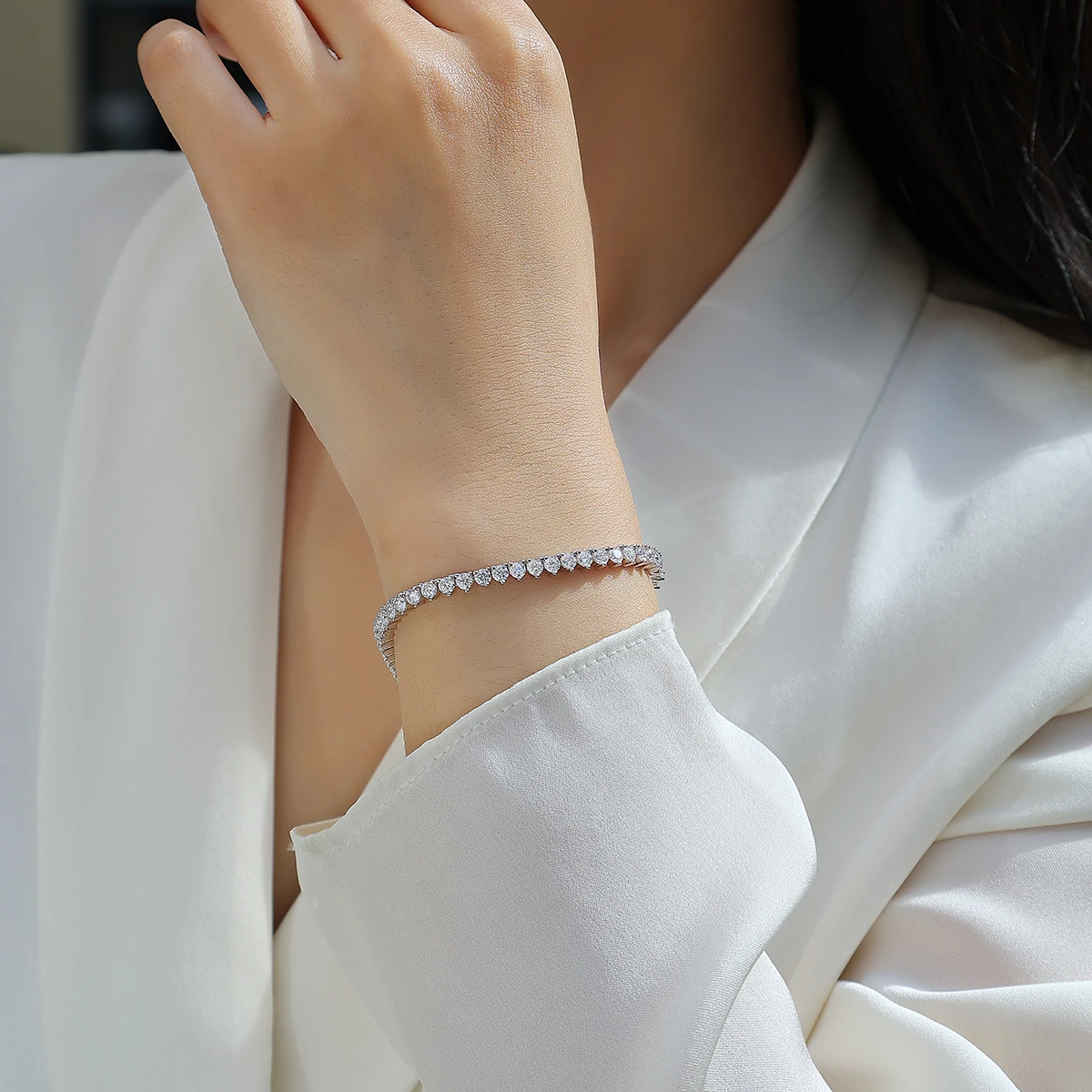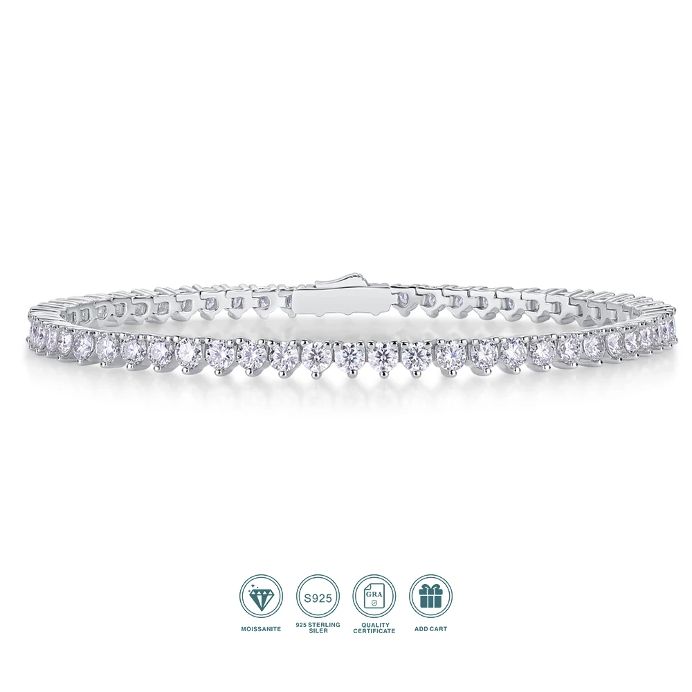 JIUZUAN Moissanite Tennis Bracelet 925 Sterling Silver 18K Gold Plated Tapered Round Design Gift for Women with GRA Certificate