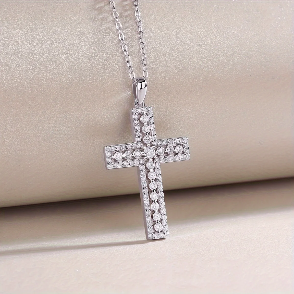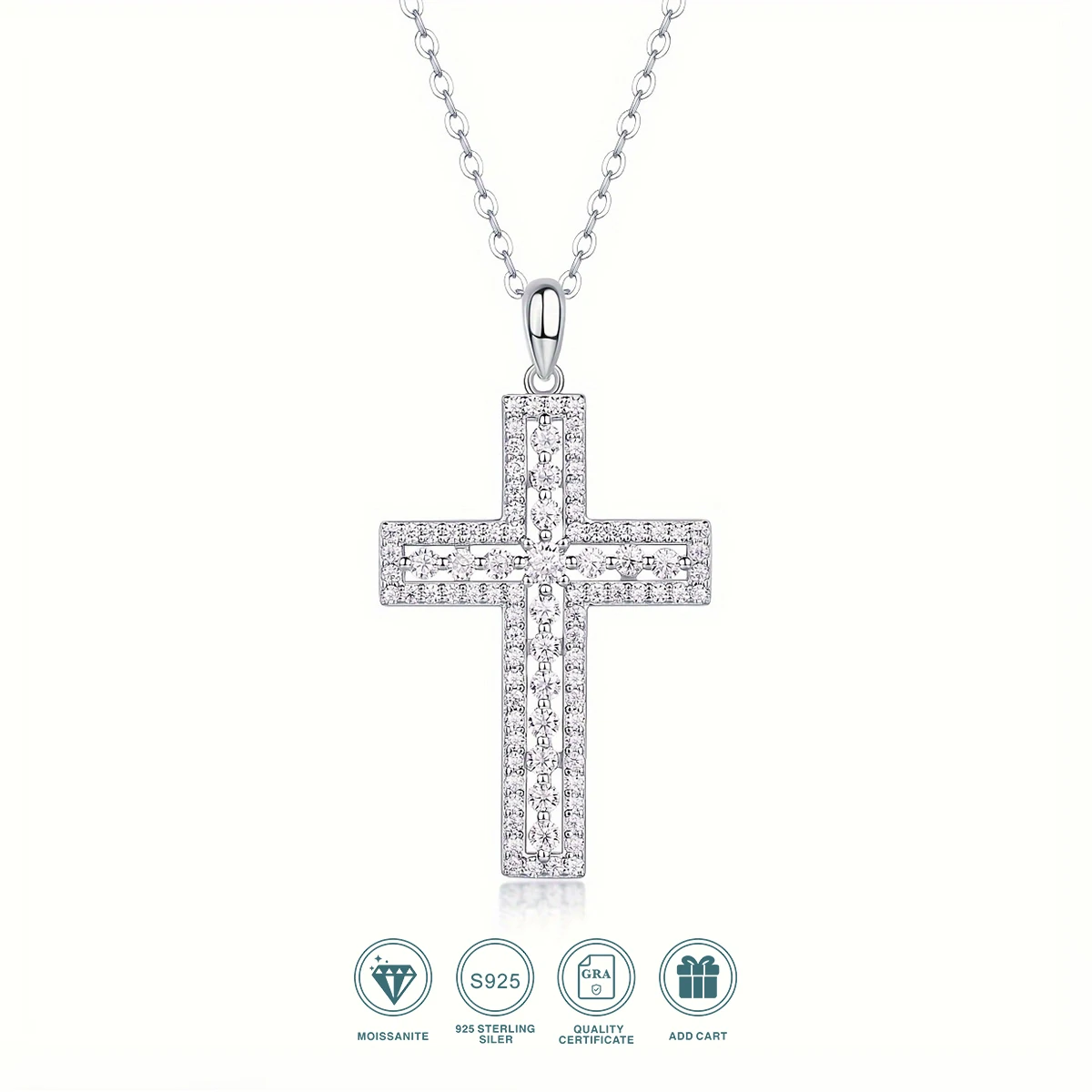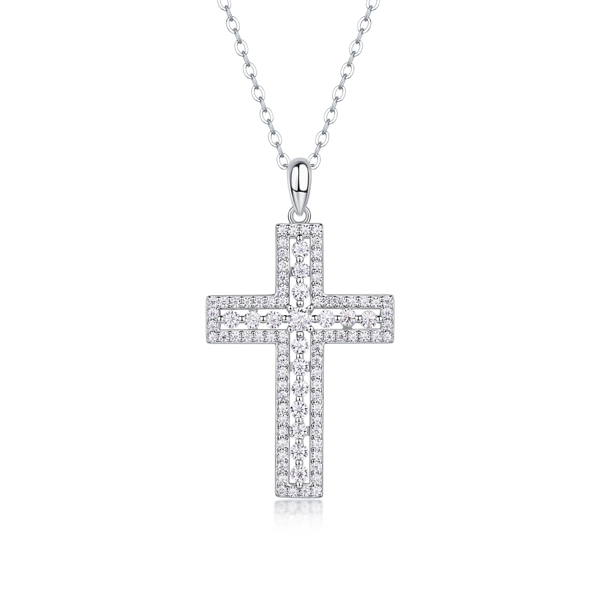 JIUZUAN S925 Silver Plated 18K Platinum Pendant Necklace Channel Set Cross Round Moissanite Diamond Wedding With Certificate