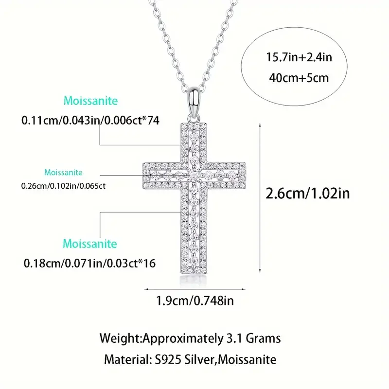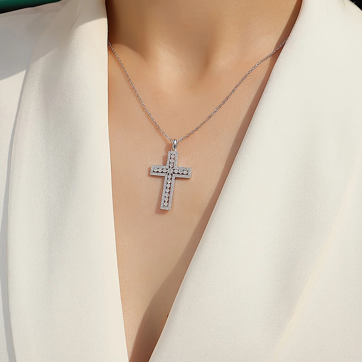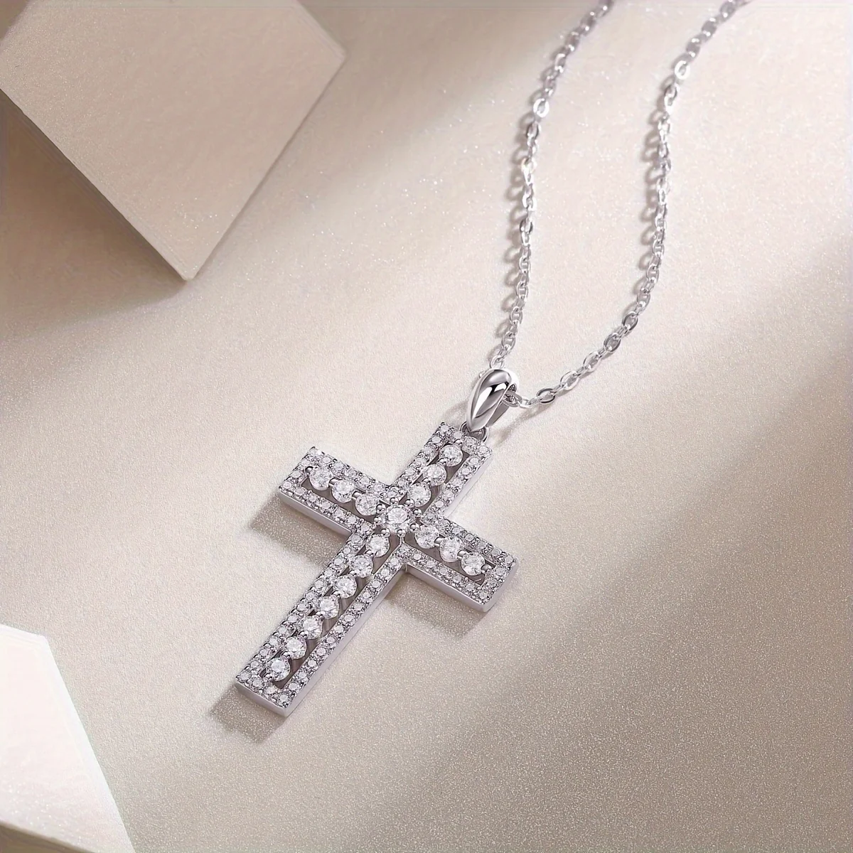 JIUZUAN S925 Silver Plated 18K Platinum Pendant Necklace Channel Set Cross Round Moissanite Diamond Wedding With Certificate