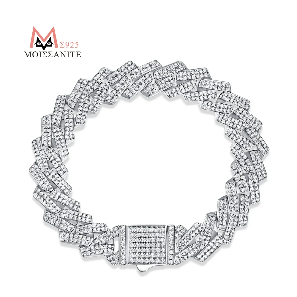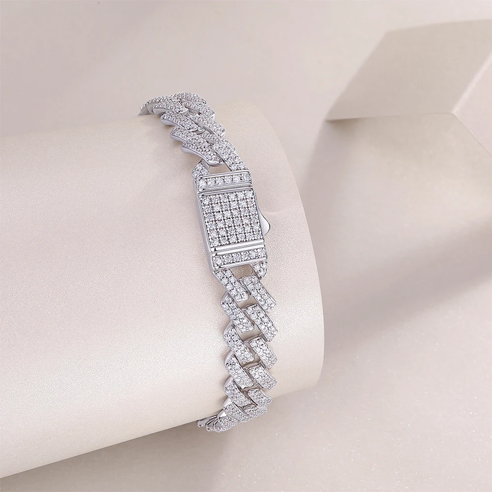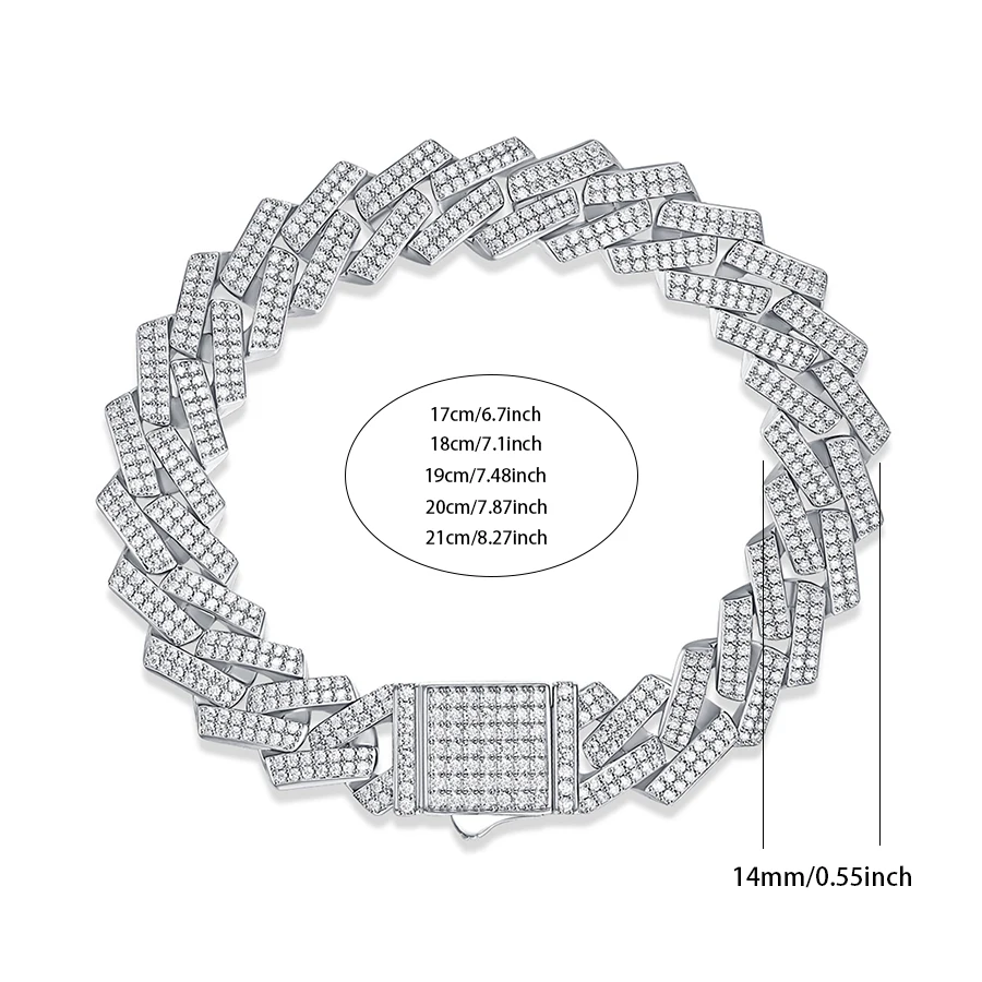 JIUZUAN Unisex Moissanite Cuban Bracelet 925 Silver 18K Gold Plated Width 10 14mm Adjustable Length Gift GRA Certificate