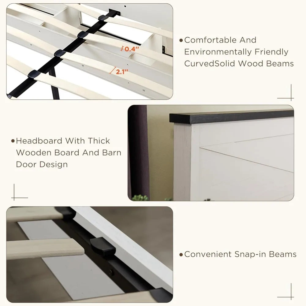 - Farmhouse King Platform Bed Frame: Designed with Barn Doors both the headboard and footboard, clean lines and silhouettes, this King Bed Frame combines modern and rustic styles. suitable for modern farmhouse decor. It will be the most attention-grabbing piece of furniture in the bedroom