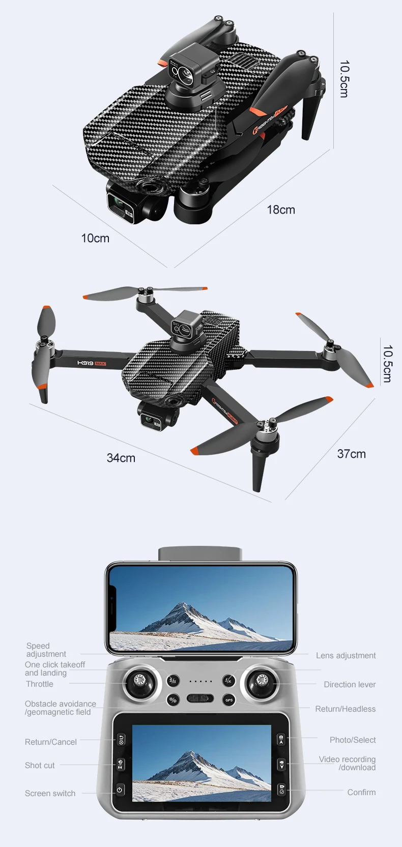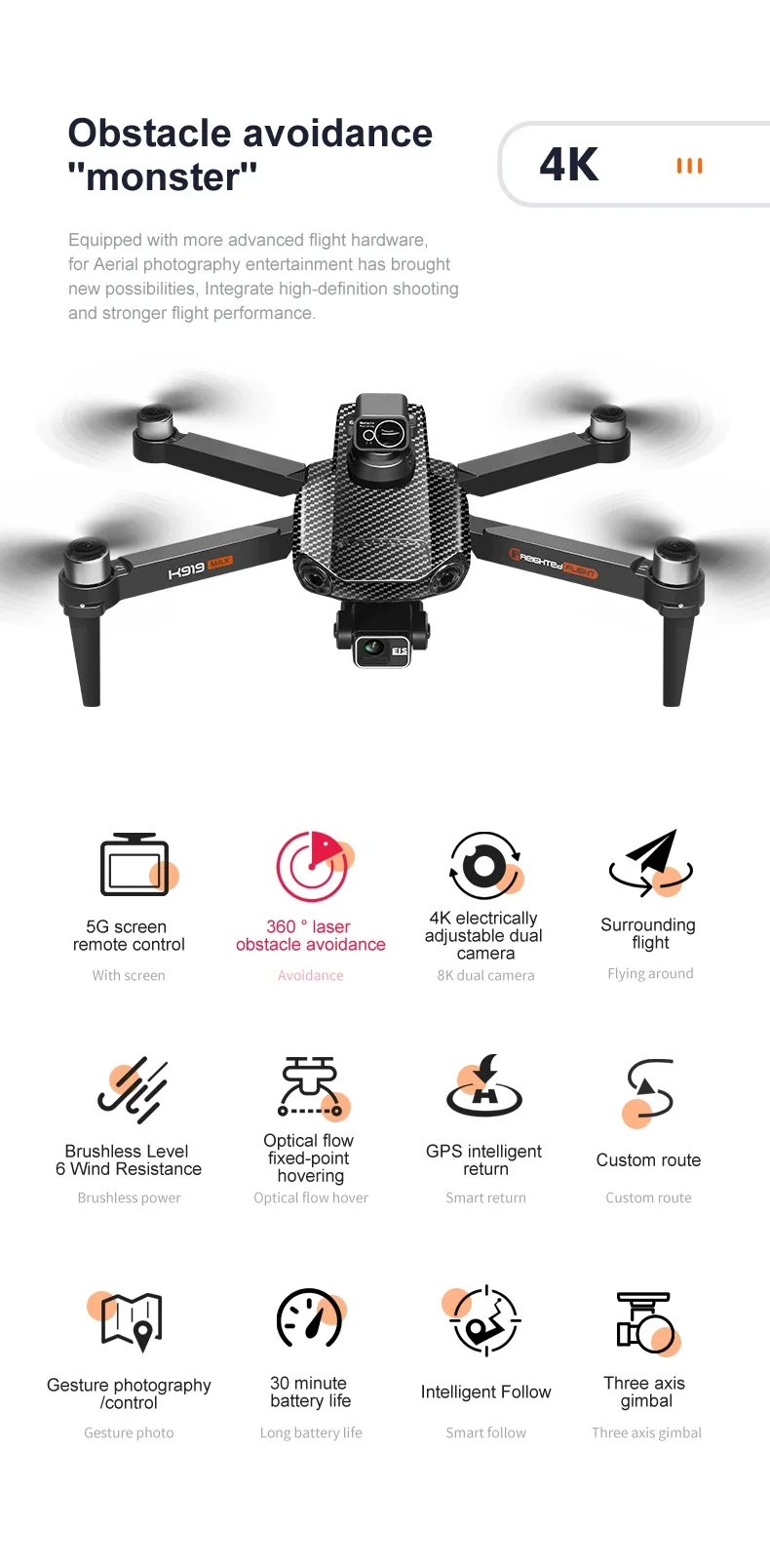 K919 max Drone 4K Professional HD Camera 3-Axis Gimbal With Touch Screen Laser/infrared Obstacle Avoidance Brushless Drones