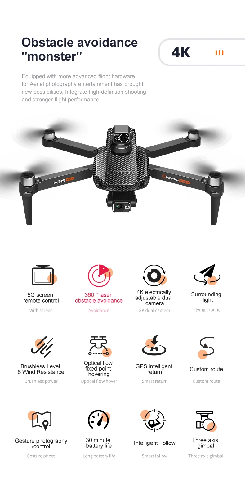 K919 MAX Drone Three-axis Gimbal EIS Stabilisation GPS Aerial Drone with Screen OAS 4K HD Camera Obstacle Avoidance UAV 1000M