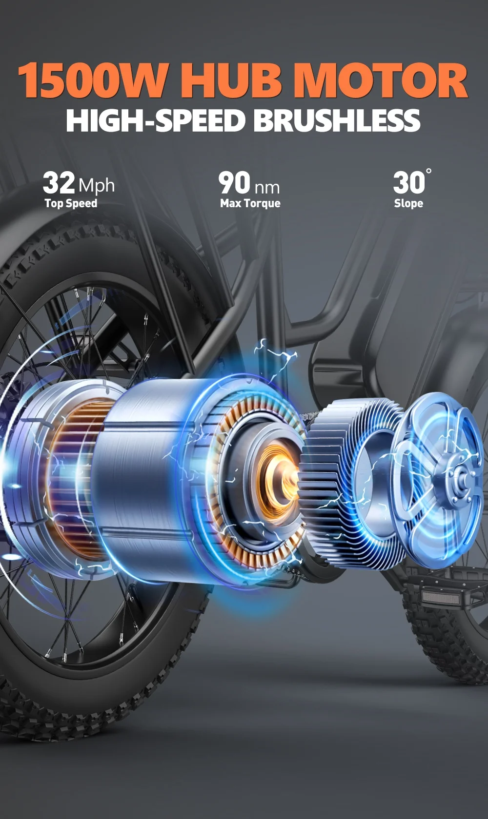 Kickwey LD20 Electric Mountain Bike 1500W Power Motor 48V20Ah Portable Battery Ebike Long Range Dual Disc Brakes Electric Bike