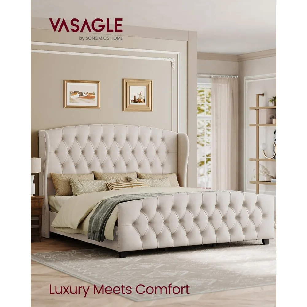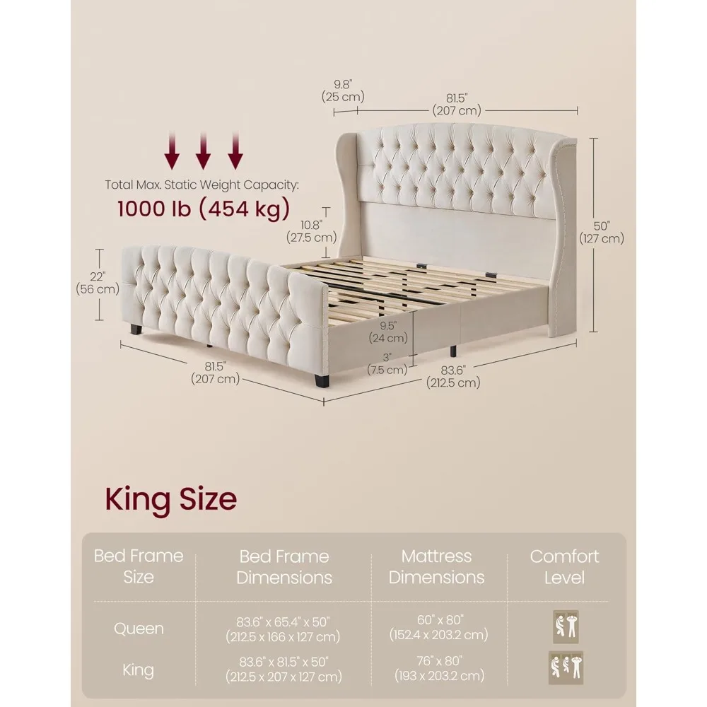 King Size Upholstered Platform Bed Frame with Tall Wingback Tufted Headboard and Footboard