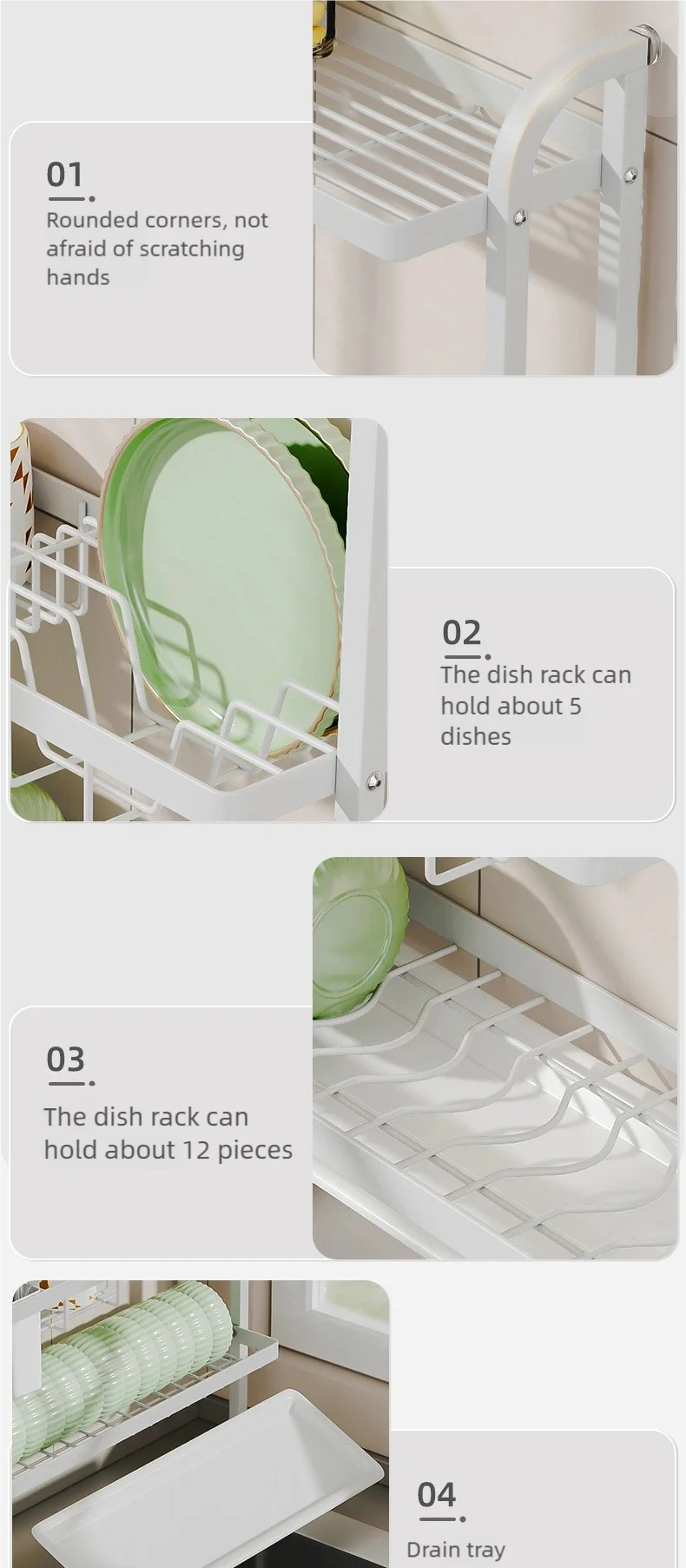 Kitchen Three Tier Dish Drainer Multifunctional Dinnerware Knives Chopsticks Cups Storage Rack Household Countertops Organizer