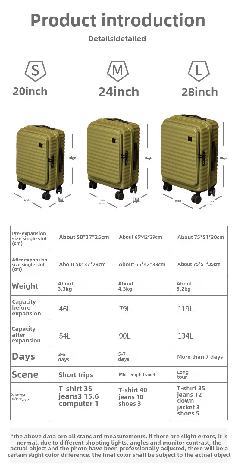 KLQDZMS Men's Luggage Side Opening Expandable Boarding Case 20"24"28 Inch Trolley Case ABS+PC Women's Handheld Travel Suitcase